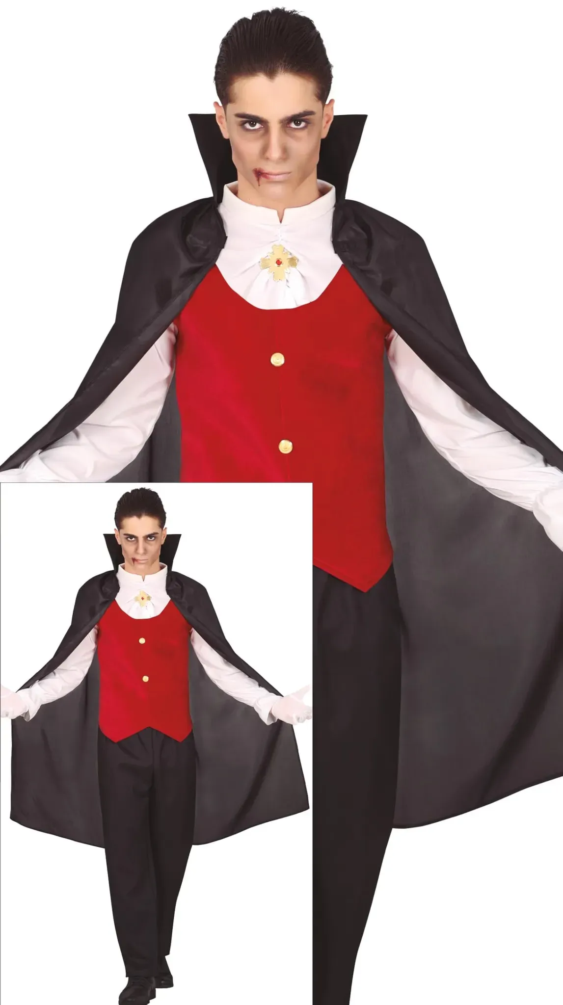 Kategorie: Kostüme - Boland - GTIN:8712026792549 - Produktdetails Ausstattung , Jacke; Oberteil; Weste, Größe , XL, Material Materialeigenschaften , Ohne, Materialzusammensetzung , 100% Polyester, Farbe Farbe , Schwarz/Rot/Weiß, Hinweise Pflegehinweise , Handwäsche, Bleichen nicht erlaubt, Nicht im Trommeltrockner trocknen, Nicht bügeln, Nicht chemisch reinigen, Altersempfehlung , für Erwachsene, - 68,95 Euro bei OTTO - gefunden von billiger.de Ein hochwertiges und elegantes Gewand für noble Vampire, ideal für anspruchsvolle Kostümierungen. ![]() ![]()