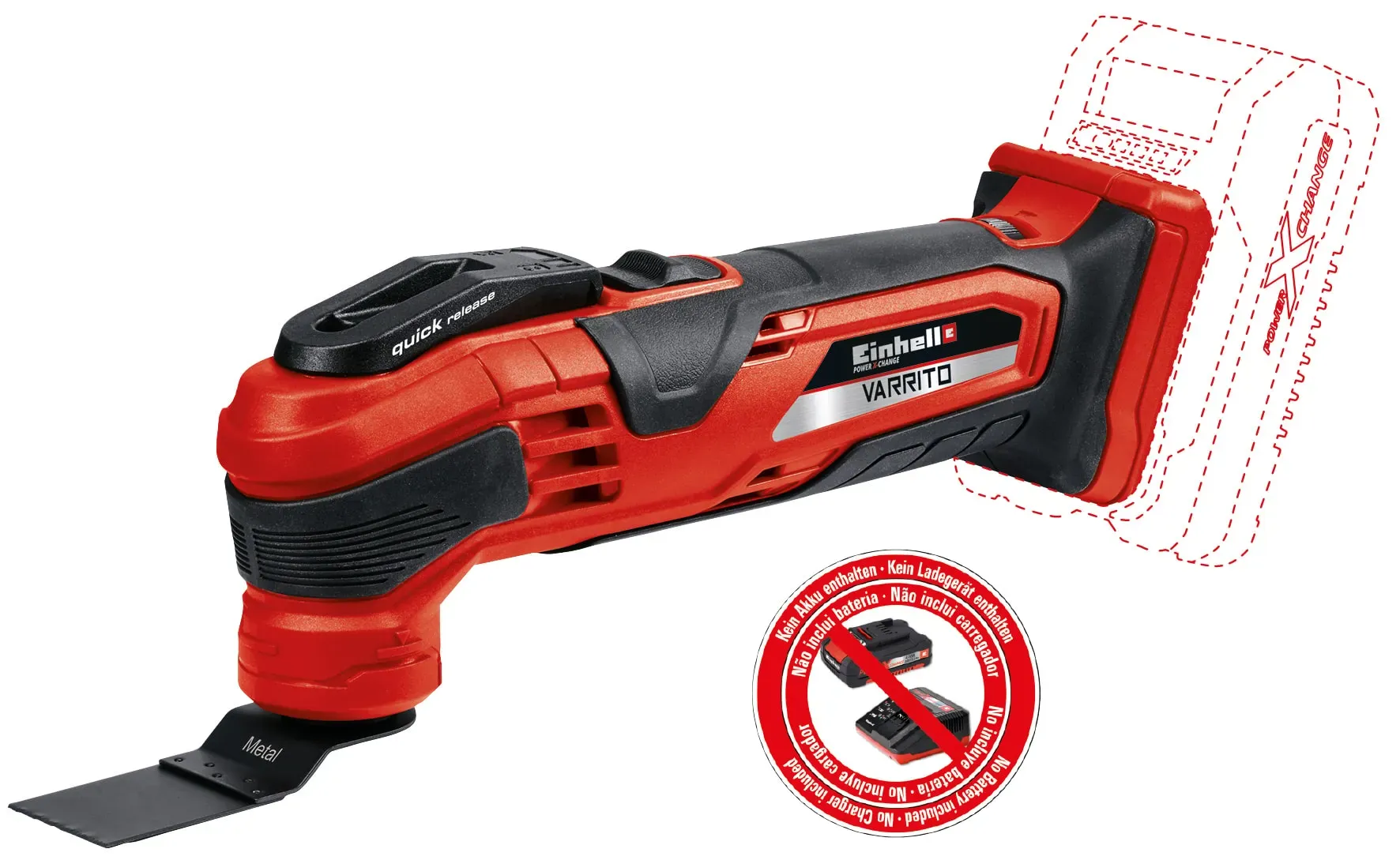 Auf Lager Versand durch AmazonEinhell Akku-Multifunktionswerkzeug VARRITO Power X-Change (Li-Ion, 18 V, 22.000 bis 40.000 min-1, Drehzahl-Elektronik, Schnellspannverschluss, magnetische Werkzeugaufnahme, ohne Akku und Ladegerät)
