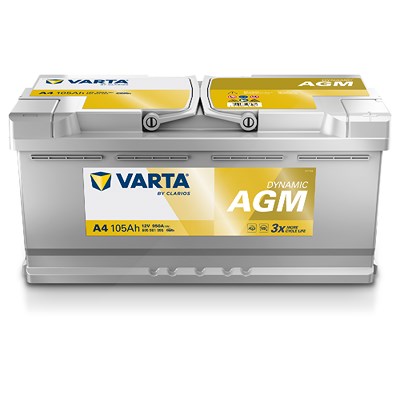 Kategorie: Autobatterien - Varta - GTIN:4016987167267 - VARTA A4 Silver Dynamic AGM 12V 105Ah 950A Autobatterie Start-Stop 605 901 095Die Varta A4 Start-Stop Silver Dynamic AGM ist perfekt geeignet für Fahrzeuge mit Start-Stop-Systemen. Das überragende Kraftpaket meistert nicht nur die permanenten Starts im Stadtverkehr, sondern übernimmt die Energieversorgung der elektrischen Geräte, wie Klimaanlage und Standheizung. Die wesentlichen Vorteile: Entwickelt für Start-Stop-Technologie mit Rückgewinnung der Bremsenergie Auslaufsichere und rüttelfeste AGM Technologie (Absorbent Glass Matt) überragende Zyklenlebensdauer Eine AGM Autobatterie muss immer ... - 190,30 Euro bei AUTOBATTERIE MARKT - gefunden von billiger.de Dieses Angebot ist eine weitere gute Option für eine 105Ah AGM-Autobatterie für Start-Stop-Systeme, die ein gutes Preis-Leistungs-Verhältnis bietet. batterie24 .de Varta A4 Dynamic AGM Autobatterie 12V 105Ah 605901095