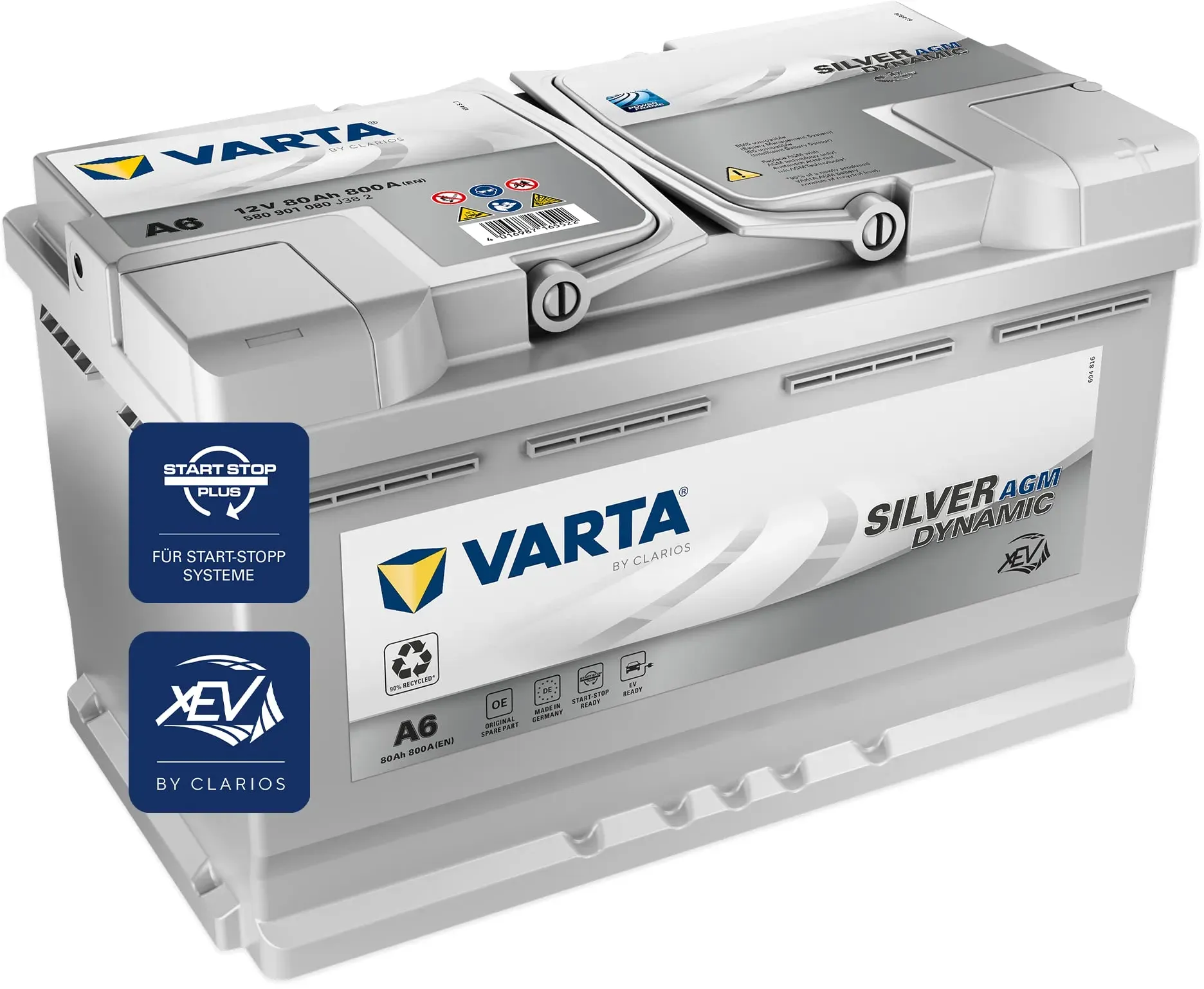 Zustand: Neu - Füge dein erstes Auto der Garage hinzu - VARTA Varta - 6104020923162 - EAN: 4016987152195 EAN: 4016987119587 - Spannung: 12 V Kapazität: 110 Ah Kälteprüfstrom EN: 920 A Maße: 392 x 175 x 190 mm Schaltung: 0 (Pluspol Rechts) - bei Amazon.de Dieses Angebot ist eine preisgünstige Option für eine VARTA A6 Silver Dynamic AGM Autobatterie mit 12V 80Ah und 800A, ideal für Start-Stop-Fahrzeuge. ![]() ![]() VARTA A6 Silver Dynamic AGM 12V 80Ah 800A Autobatterie Start-Stop 580 901 080