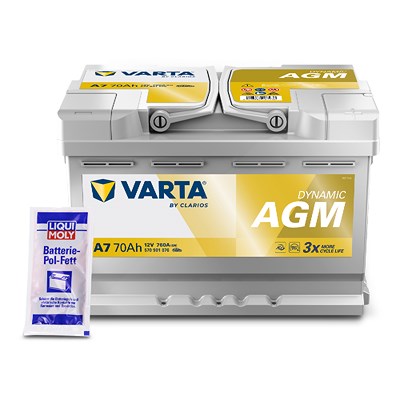 Zustand: Neu - Autobatterien - VARTA - 570 901 076 RIV003 - EAN: 4016987167236 - FÜR ELEKTRO & HYBRID GEEIGNET: Ob Start-Stopp-Fahrzeuge oder Elektro- und Hybridelektroautos (xEV) - die VARTA Batterien gewährleisten Sicherheit und Zuverlässigkeit hinsichtlich wesentlicher Fahrzeuganforderungen heute und in Zukunft BESTE START-STOPP LEISTUNG: Eine AGM springt schneller an, arbeitet härter und hält länger und sichert dadurch maximale Kraftstoffeinsparung mit Start-Stopp-Systemen DREIFACHE ZYKLENLEBENSDAUER: Dank patentierter PowerFrame-Technologie werden eine schnelle Ladefähigkeit und eine höhere Korrosionsbeständigkeit gesichert. Die Batterie ist besonders robust und überzeugt mit einer perfekten Kaltstartleistung WARTUNGSFREI & SORGENFREI: Wartungsfreie Batterie in bewährter VARTA Qualität, die für eine zuverlässige Leistung Ihres Fahrzeugs ausgelegt ist - Verkäufer: batterie24-de im amazon.de Marketplace ![]() ![]() VARTA Automotive DYNAMIC AGM (A7) 12V 70Ah 760A - Nassbatterie für Start-Stopp Systeme und xEV - Starterbatterie für Autos mit höherem Energiebedarf - Wartungsfreie Bleisäurebatterie