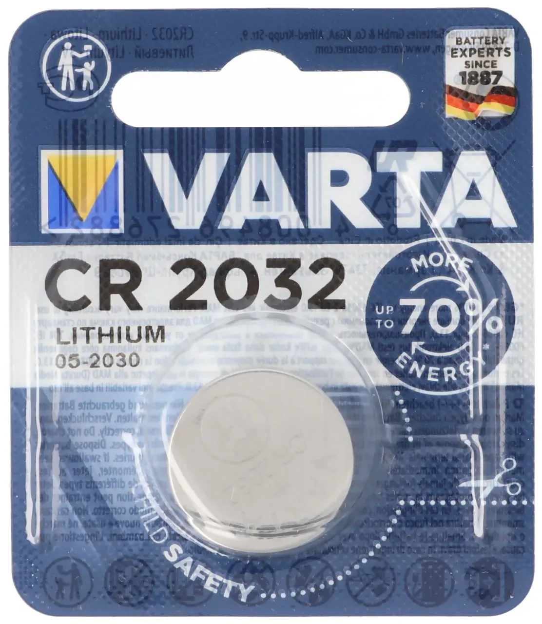 Kategorie: Batterien & Akkus - Varta - GTIN:4008496276882 - VARTA 1 Varta 6032 Professional CR 2032 Lithium Knopfzelle Batterie Blister Knopfzelle - 0,79 Euro bei OTTO - gefunden von billiger.de Dieses Angebot bietet eine einzelne Varta CR2032 Batterie zu einem sehr attraktiven Preis von 0.89 Euro. ![]() 342032 / Contorion Varta Knopfzelle Professional Electronics 3 V 230 mAh CR2032 20,0x3,2mm (06032 101 401)