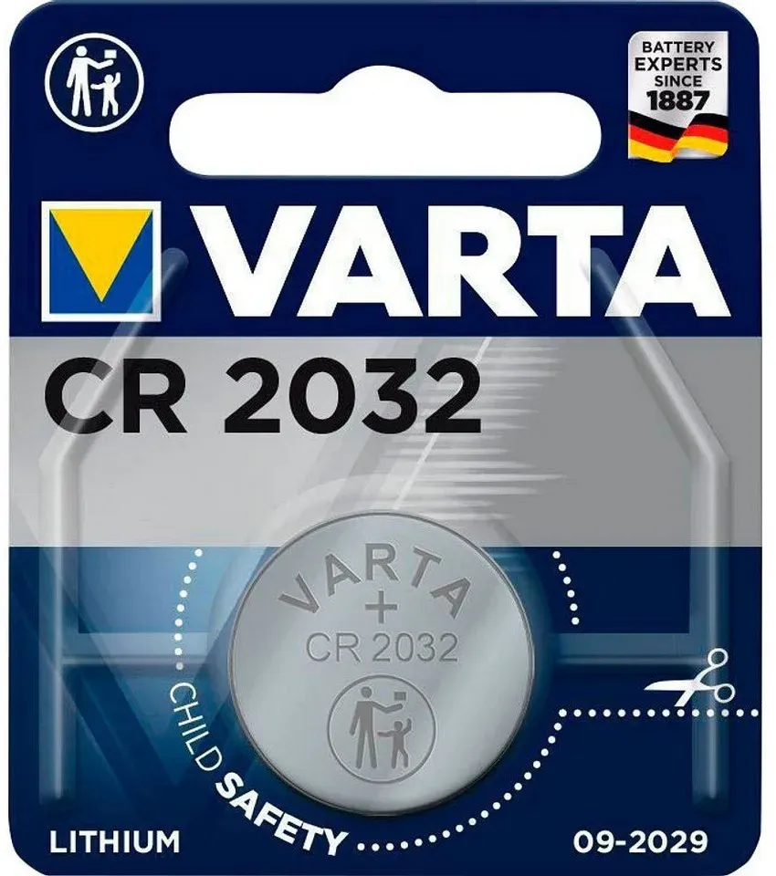 Kategorie: Batterien & Akkus - Varta - GTIN:4008496276882 - Produktdetails Bezeichnung , VARTA Lithium-Knopfzelle CR2032 3,0Volt 230mAh, Technische Daten Spannung , 3 Volt V, Maße & Gewicht Gewicht , 0.004 g, - 1,40 Euro bei OTTO - gefunden von billiger.de Dieses 2er-Pack ist mit 1.50 Euro eine kostengünstige Option für den Kauf von zwei Varta CR2032 Batterien. ![]() ![]() VARTA Batterien Knopfzelle CR2032, 2 Stück, Lithium Coin, 3V, kindersichere Verpackung, für elektronische Kleingeräte - Autoschlüssel, Fernbedienungen, Waagen
