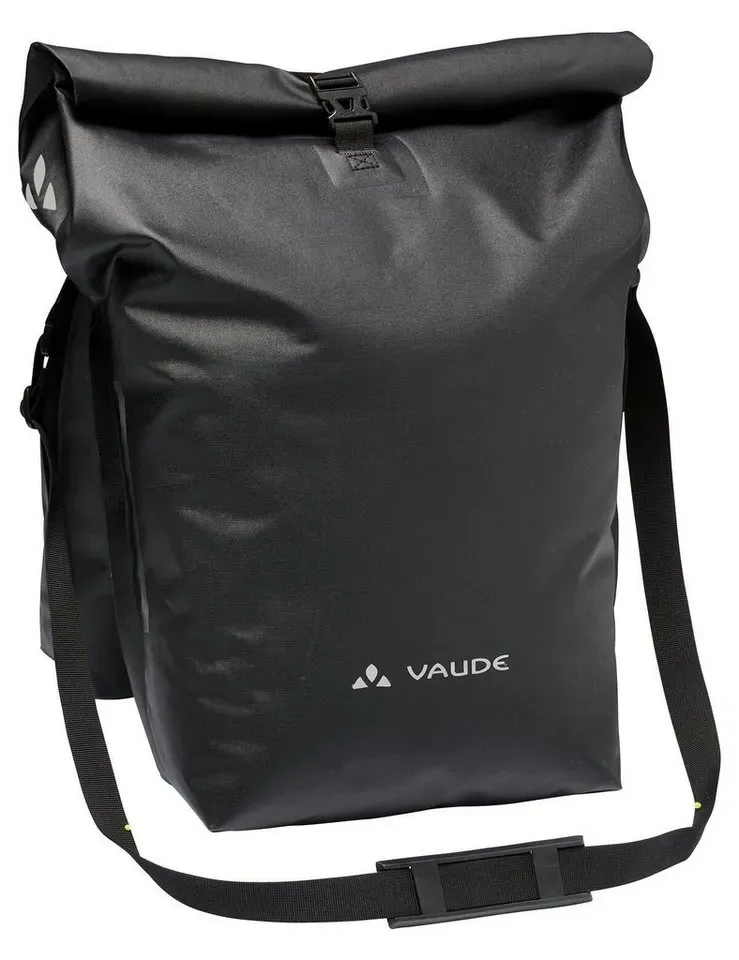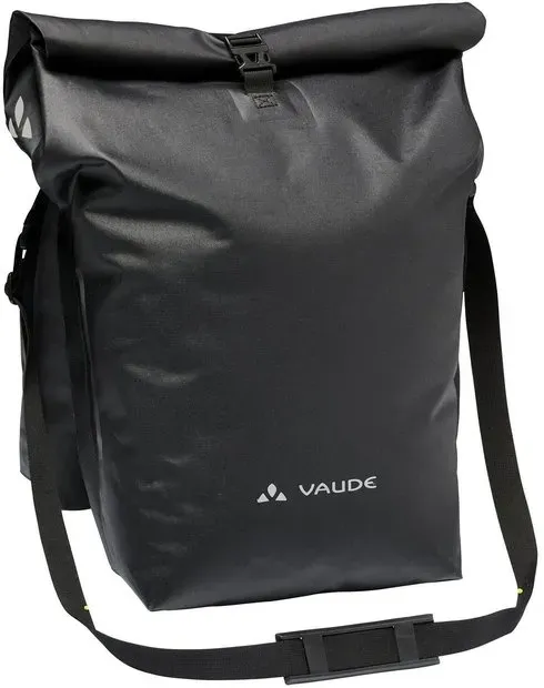 10 Händlerangebote bei billiger.de - Kategorie: Fahrradtaschen - Vaude - Doppel-Fahrradtasche zum Auflegen auf den Gepäckträger überwurf-Prinzip, 2 Hauptfächer wasserdicht verschweißt, mit abnehmbarem Schulterträger klimaneutral, aus überwiegend recycelten Materialien hergestellt - GTIN:4062218661189 ![]() ![]()