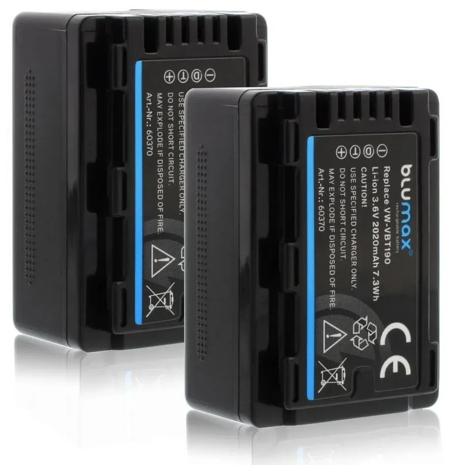 lieferbar-in 2-3 Werktagen bei dirBlumax 2x VW-VBT190 E-K VW-VBK180 VW-VBT380 2020 mAh Kamera-Akku schwarz