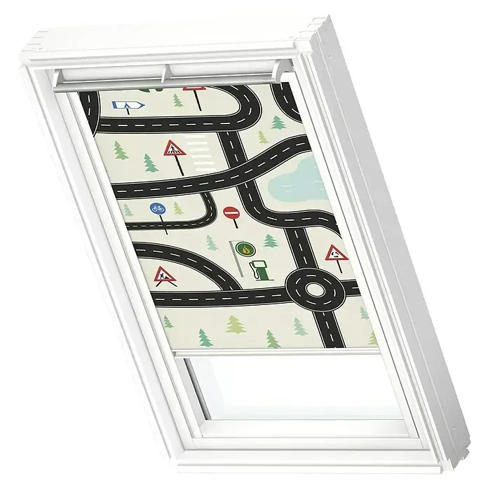 Verfügbarkeit: 5-6 Werktage - 139,5 €/Stück - Kategorie: Zubehör für Fenster - VELUX - GTIN:5702328534674 - Das VELUX Dachfensterrollo DKL ermöglicht die Abdunkelung von Räumen bei Tag und Nacht. Auch grelles Sonnenlicht kann abgedunkelt werden, sodass eine Entspannung zu jeder Uhrzeit möglich wird. Das Verdunkelungsrollo läuft in seitlichen Führungsschienen, wodurch eine leichtgängige und stufenlose Positionierung des Rollos sichergestellt wird. Zusätzlich wird die Dämmwirkung des Fensters erhöht, dadurch wird besonders im Winter der Wärmeverlust des Fensters reduziert. Durch eine hohe Passgenauigkeit wird eine einfache Montage ermöglicht. Die benötigte Größe eines VELUX Dachfensters kann dem Typenschild entnommen werden, welches bei geöffnetem Fenster sichtbar wird. - 139,50 Euro bei BAUHAUS - gefunden von billiger.de Dieses Rollo mit "Kids Straßen"-Motiv ist ideal für Kinderzimmer und bietet eine effektive Verdunkelung. ![]() ![]() Velux Dachfensterrollo DKL S06 4655SWL (Farbe: Kids Straßen - 4655SWL, Manuell)