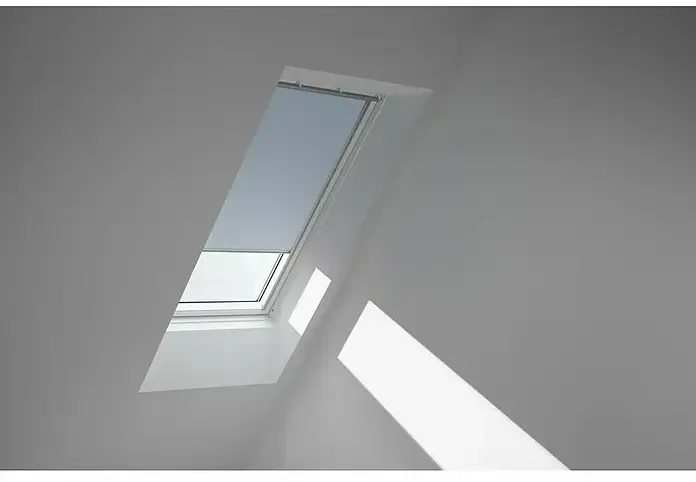Verfügbarkeit: 5-6 Werktage - 139,5 €/Stück - Kategorie: Zubehör für Fenster - VELUX - GTIN:5702327423214 - Das VELUX Dachfensterrollo DKL ermöglicht die Abdunkelung von Räumen bei Tag und Nacht. Auch grelles Sonnenlicht kann abgedunkelt werden, sodass eine Entspannung zu jeder Uhrzeit möglich wird. Das Verdunkelungsrollo läuft in seitlichen Führungsschienen, wodurch eine leichtgängige und stufenlose Positionierung des Rollos sichergestellt wird. Zusätzlich wird die Dämmwirkung des Fensters erhöht, dadurch wird besonders im Winter der Wärmeverlust des Fensters reduziert. Durch eine hohe Passgenauigkeit wird eine einfache Montage ermöglicht. Die benötigte Größe eines VELUX Dachfensters kann dem Typenschild entnommen werden, welches bei geöffnetem Fenster sichtbar wird. - 139,50 Euro bei BAUHAUS - gefunden von billiger.de Ein himmelblaues Rollo, das eine beruhigende Atmosphäre schafft und manuell bedienbar ist. ![]() ![]() Velux Dachfensterrollo DKL S06 4576S (Farbe: Himmelblau - 4576S, Manuell)