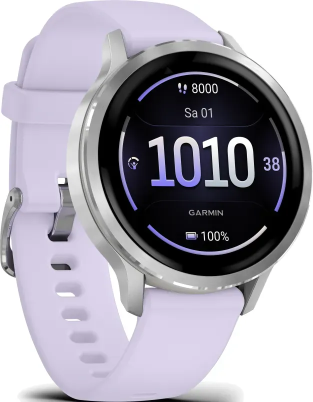 Artikel auf Lager, Lieferzeit 1 bis 3 WerktageGarmin Venu 4 Venu 4 - 41 mm Grau/Silber mit Schnellwechsel-Silikon-Armband 18 mm Lavendelblau" 010-03013-01" - AMOLED Farb-Touchdisplay,digital,variabel,Lavendelblau - 41mm