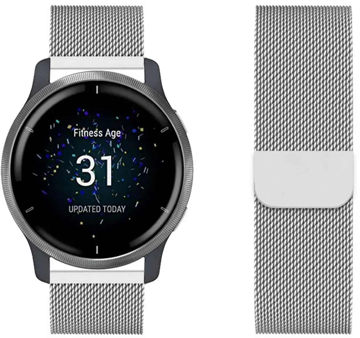 Kategorie: Uhrenarmbänder - Fintie - Personalisieren Sie Ihr Vivoactive 4S (40mm), Venu 3S (41mm), Venu 2S (40mm), Vivomove 3s Smartwatch. Geeignet für einen Handgelenkumfang von 17cm-23,5cm. Die Länge kann dem Handgelenksumfang entsprechend angepasst werden. Die einzigartige Doppelfaltschließe schliesst Ihr metallarmband fest und zuverlässig. Sicher und im Trend. Einfach zu installieren und zu entfernen. Material aus Edelstahl mit hochwertiger Oberfläche-Bearbeitung. Ideal für Büro und Freizeit. Bis zu 8 Glieder können entfernt werden. Die Länge kann einfach mit dem beiliegenden Werkzeug angepasst werden (Hinweis: Bitte lesen Sie die Anweisung in der Verpackung). - 11,99 Euro bei Amazon Marketplace CE - gefunden von billiger.de Dieses magnetische Mesh-Ersatzarmband aus Edelstahl von lxury bietet eine stilvolle und bequeme Trageoption. ![]() ![]() lxury Metall Edelstahl Armbänder Kompatibel mit Garmin Venu 2S/Vivoactive 4S/Vivomove 3S Armband Magnetisch Einstellbar Mesh Ersatzarmband für Garmin Venu 2S/Vivoactive 4S/Vivomove 3S Uhrenarmband (13)