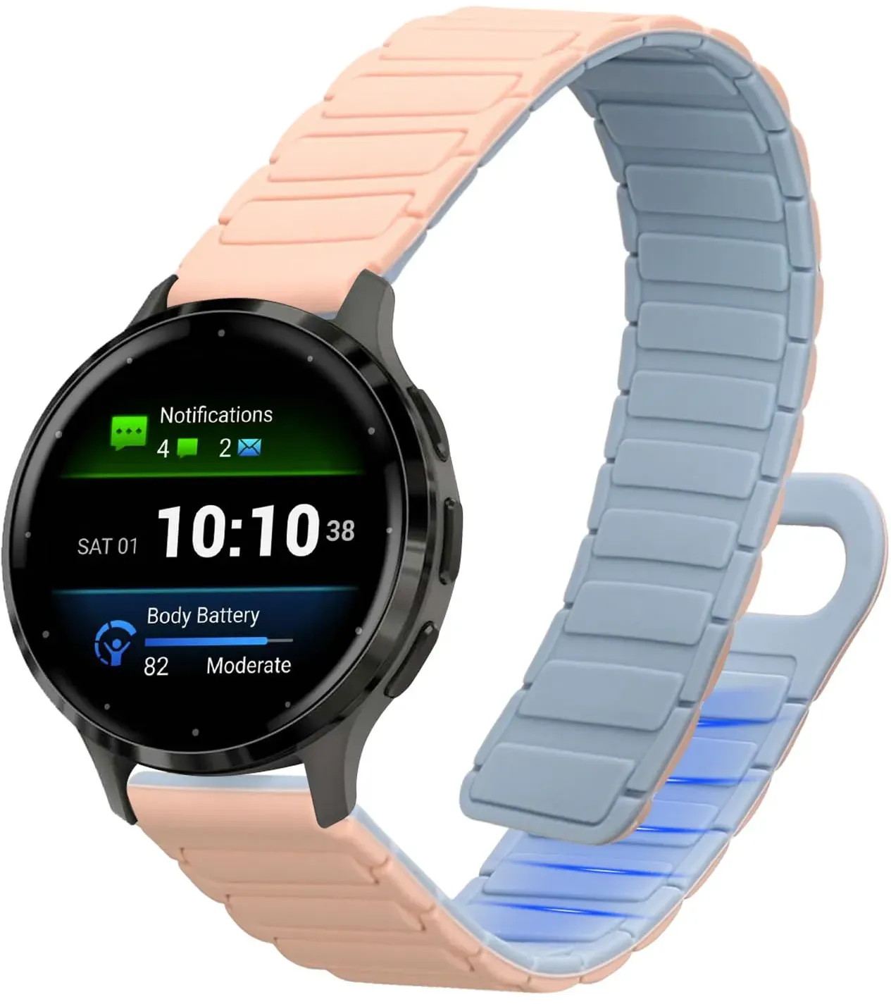 Kategorie: Smartwatch Zubehör - kwmobile - GTIN:4067668176757 - KOMPATIBEL MIT: Garmin Venu 3S / Venu 2S / vivoactive 4S / Forerunner 265S 255S Einfaches Anlegen Und Komfortables Tragen: Dank des starken magnetischen Verschlusses lässt sich das Silikonarmband schnell und mühelos anlegen. Es bietet sicheren Halt und eliminiert den Aufwand klassischer Verschlüsse. Perfekt Für Aktive Nutzer: Schweißresistentes Silikon sorgt für langanhaltenden Komfort bei intensiven Workouts. Der starke Magnet hält das Armband sicher, selbst bei starken Bewegungen. Modernes Design: Die nahtlose Optik verleiht deinem Smartwatch-Armband einen eleganten Look. Es passt zu jedem Outfit ob sportlich, casual oder professionell und hebt deinen Stil hervor. Individuell Anpassbar: Die Größe des Armbands lässt sich präzise einstellen, damit es immer perfekt sitzt. Größe einstellbar mit 14 - 22 cm. - 9,99 Euro bei Amazon Marketplace CE - gefunden von billiger.de Dieses Fintie Edelstahl-Metallarmband mit Doppelfaltschließe bietet eine klassische und sichere Befestigung für Ihre Uhr. ![]() ![]() Fintie Armband Kompatibel mit Venu 3S/ Venu 2S/Vivoactive 4S/Vivomove 3S - 18mm Uhrenarmband Edelstahl Metall Ersatzband mit Doppelt Faltschließe, Ros gold