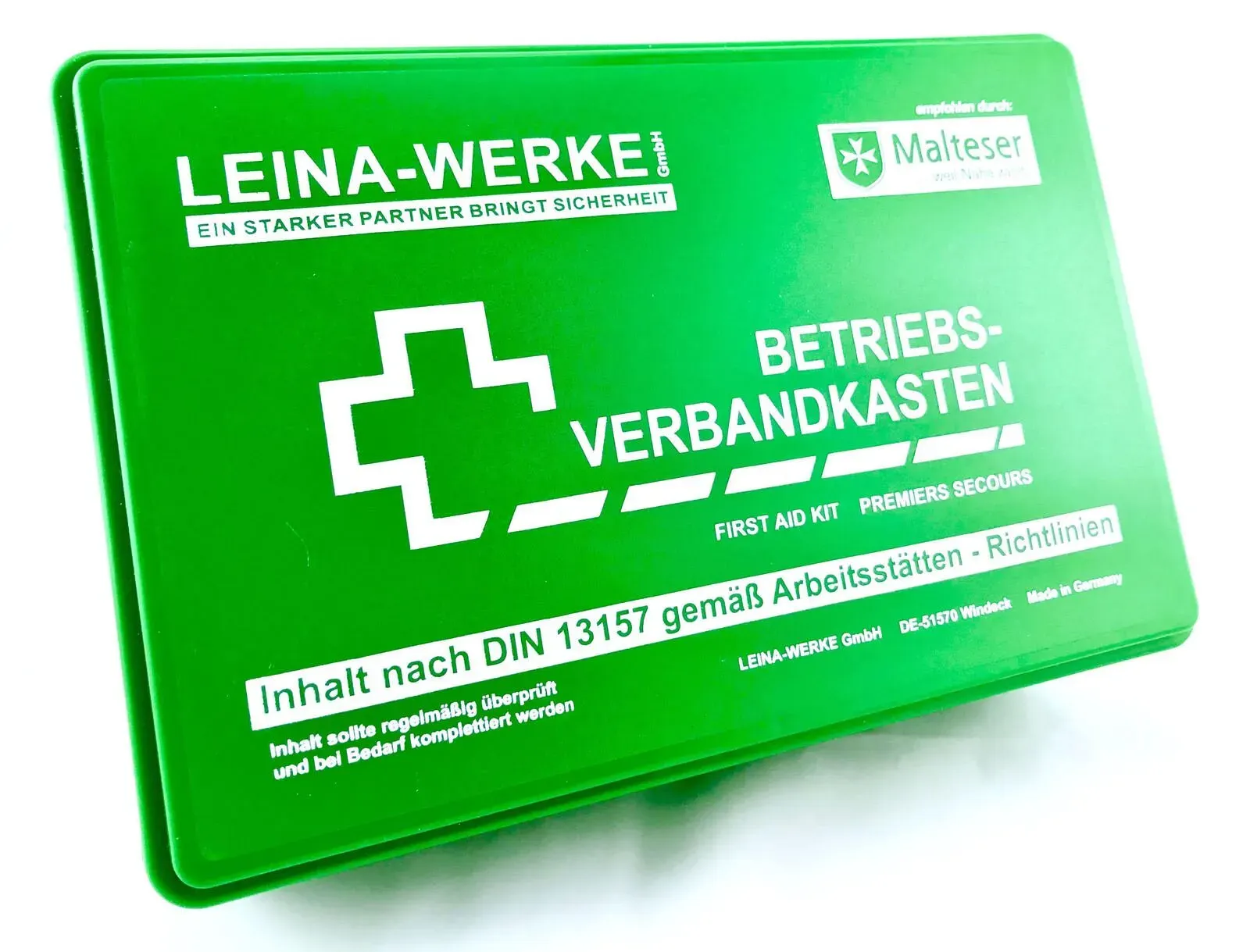 Verfügbarkeit: Auf Lager, sofort versandfertig Lieferzeit 1-2 Werktage - Kategorie: Erste Hilfe - Leina-Werke - GTIN:4011166200001 - LEINA-WERKE Verbandskasten DIN 13157 - 19,86 Euro bei Office Partner GmbH - gefunden von billiger.de Ein preiswerter Betriebsverbandskasten nach DIN 13157, der mit Wandhalterung und Aufklebern geliefert wird und somit ideal für kleine Betriebe oder das Zuhause ist. ![]() ![]() WERKSTEIN Erste Hilfe Kasten Small mit Inhalt nach DIN 13157 I Verbandskasten Betrieb inkl. praktischer Wandhalterung & 5x Aufkleber I Verbandskasten DIN 13157 für Betriebe, Einrichtungen & Zuhause