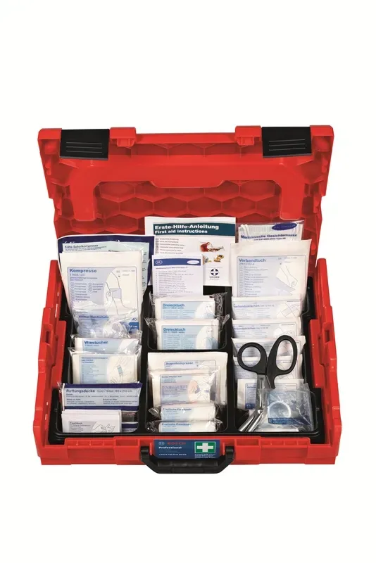 Verfügbarkeit: Auf Lager, sofort versandfertig Lieferzeit 1-2 Werktage - Kategorie: Erste Hilfe - Söhngen - GTIN:4250108806158 - Söhngen Verbandskasten Kindergarten ohne DIN - 65,44 Euro bei Office Partner GmbH - gefunden von billiger.de Ein hochwertiger Verbandskasten in einer Bosch L-BOXX, ideal für den professionellen Einsatz und den Transport. ![]() ![]() Bosch L-BOXX 102 Erste-Hilfe-Set Verbandskasten Verbandmaterial nach DIN13157