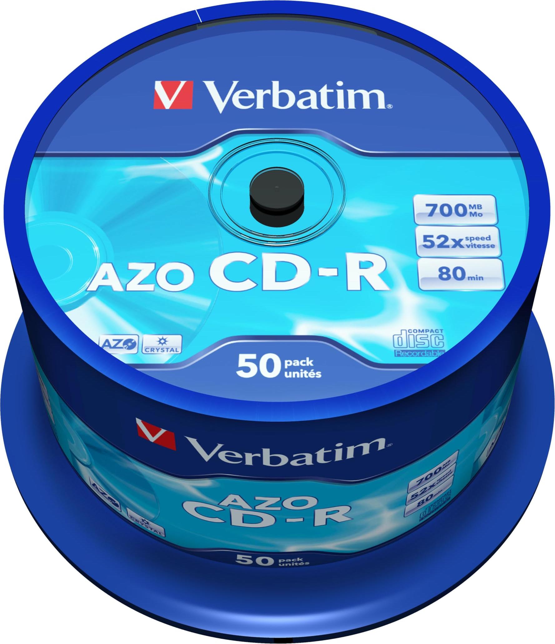 Auf Lager Versand durch AmazonVerbatim CD-R AZO Wide Inkjet Printable 700 MB, 50er Pack Spindel, CD Rohlinge, 52-fache Brenngeschwindigkeit mit langer Lebensdauer, leere CDs bedruckbar, Audio CD Rohling