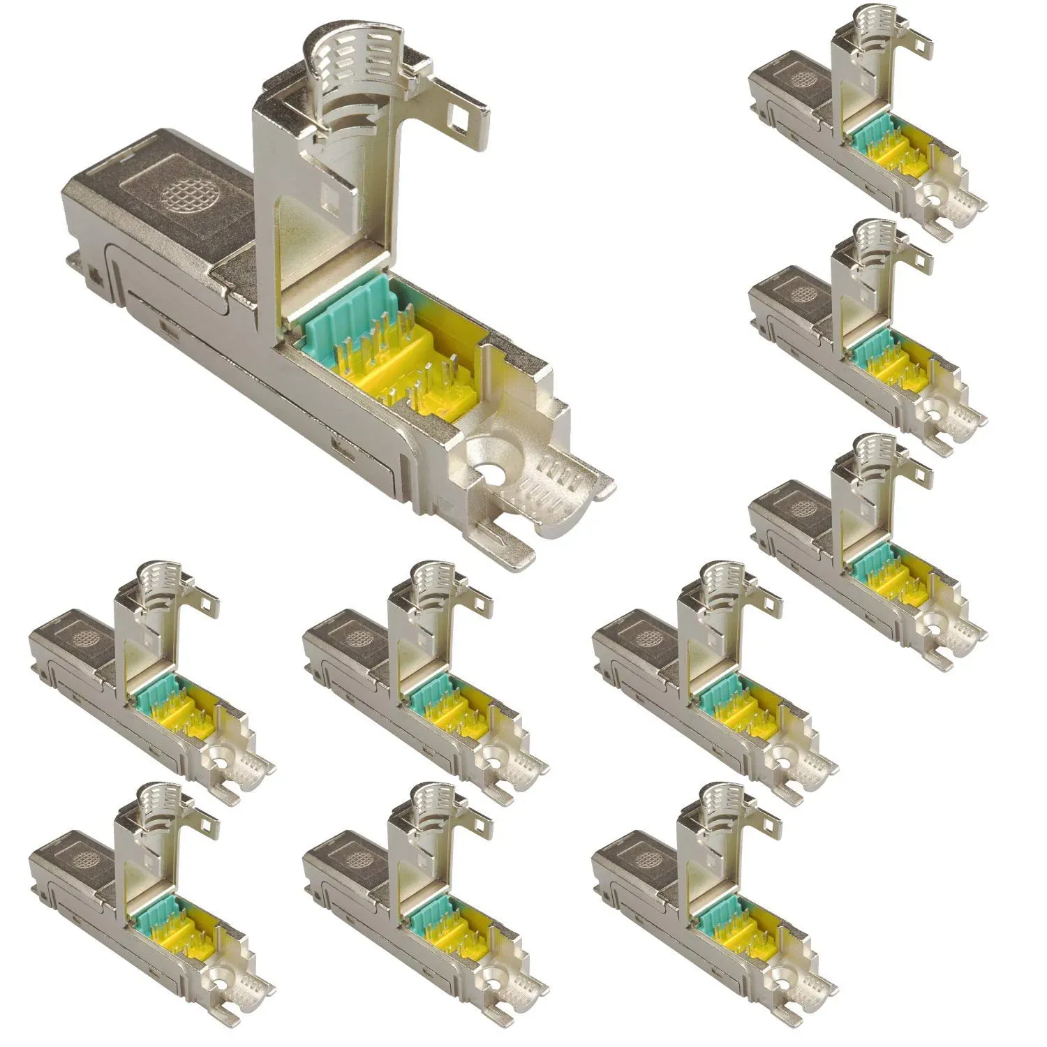 Kategorie: Sonstige Elektroinstallationsartikel - HB-Digital - GTIN:4063328046408 - Werkzeuglose Verbindung: Einfaches und schnelles Verbinden von Netzwerkkabeln ohne zusätzliche Werkzeuge für eine mühelose Installation. Hohe Datenübertragungsgeschwindigkeit: Unterstützt den CAT7-Standard für stabile Netzwerkleistung mit bis zu 10 Gbit/s. Breite Kabelkompatibilität: Geeignet für Kabeldurchmesser von 5,5 8 mm und Leiterarten (Massiv- und Litzenleiter) in AWG 26 22. Effektive Störungsabschirmung: Robustes Zinkgehäuse mit STP-Abschirmung schützt zuverlässig vor elektromagnetischen Interferenzen. Sichere Befestigung und Langlebigkeit: Mit praktischen Befestigungsösen für eine stabile und dauerhafte Installation auch unter anspruchsvollen Bedingungen. - 59,89 Euro bei Amazon Marketplace Automotive - gefunden von billiger.de Dieses 8er-Set von HB-DIGITAL ist eine gute Option für größere Installationen und bietet werkzeuglose Montage. ![]() ![]() HB-DIGITAL 8x CAT 7 LSA werkzeugloser Netzwerkkabel Verbinder CAT 7 STP feldkonfektionierbare Kupplung Adapter Verlängerung für LAN Verlegekabel Ethernet Installationskabel