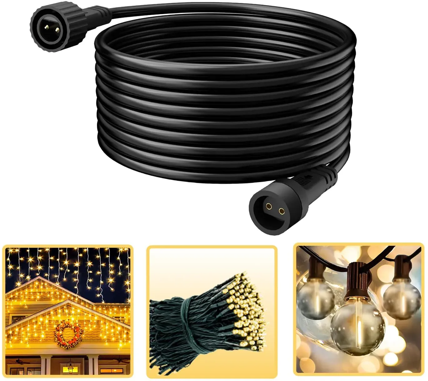 Kategorie: Lichterketten - gcstnn - 10M/33Ft 2-poliges Verlängerungskabel :Wenn Sie immer noch mit Kabeln zu kämpfen haben, die nicht lang genug sind, ist dieses professionelle Verlängerungskabel für den Außenbereich die perfekte Lösung für Sie! Es kann Ihre Kabel um bis zu 10 Meter verlängern, was den Stecker flexibler macht, um ihn in die Steckdose zu stecken und Ihre verschiedenen Bedürfnisse der Außenbeleuchtung zu erfüllen! HINWEIS :Bitte überprüfen Sie die Art des Anschlusskabels, das Sie für Ihre Außen-Weihnachtsbeleuchtung haben, wählen Sie das richtige Verlängerungskabel für Ihre Lichter nach unseren Bildern. Wenn Sie nicht sicher sind, ob Ihre Kette mit unserem Kabel kompatibel ist, kontaktieren Sie uns bitte und wir werden Ihnen helfen. Wasserdichtes Verlängerungskabel :Das Verlängerungskabel ist wasserdicht nach IP65 und eignet sich daher sowohl für den Innen- als auch für den Außeneinsatz. Hochwertiges Verlängerungskabel, das für den ganzjährigen Einsatz im Freien geeignet ist! Einfach zu Verwenden :Plug and Play, einfach das Lichterketten-Verlängerungskabel anschließen, die beiden Gelenke ausrichten, einstecken und festschrauben, und das Kabel ist erfolgreich angeschlossen. Verschiedene Anlässe : Das Verlängerungskabel ist für Lichterketten für den Außenbereich konzipiert, damit Sie Lichterketten aufhängen können, wo immer Sie wollen! Geeignet für Gartenlichter, G40 Globe Lights, Icicle Lights, Net Lights, Vorhang Lichter, die meisten Xmas String Lights ... ![]() ![]() Lichterkette System - DECOR & eBay Zubehör, LED warm, Systemlichterkette, Lichterketten