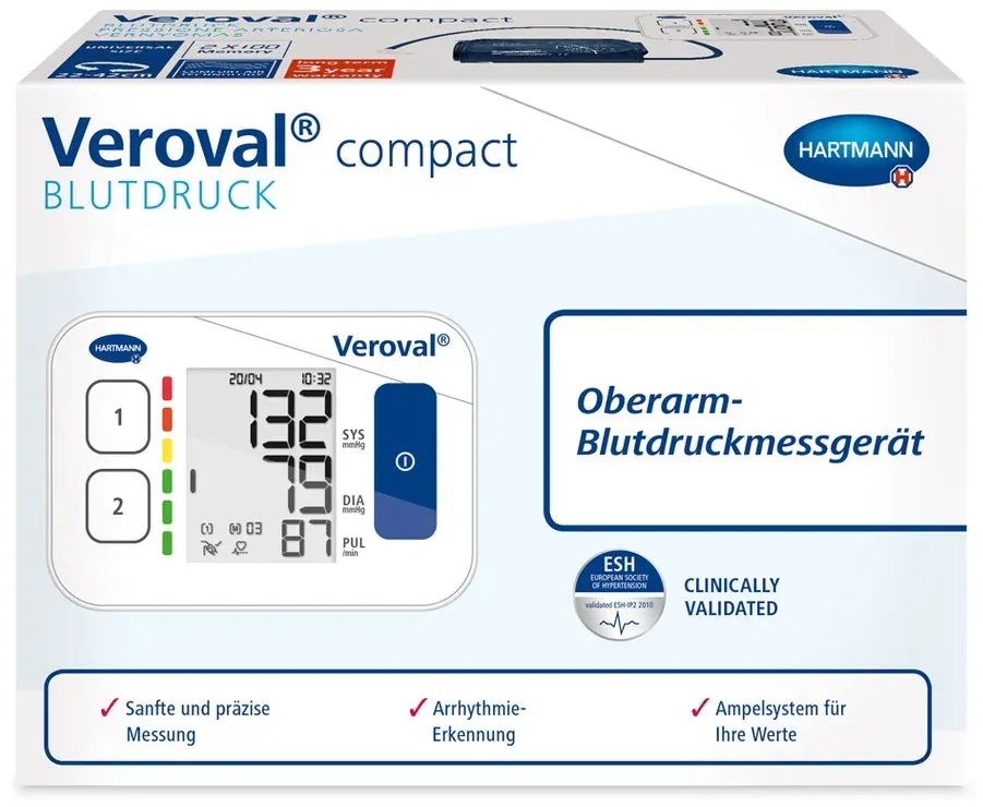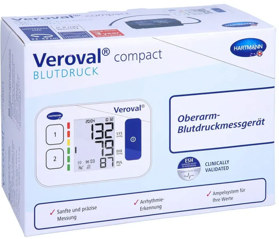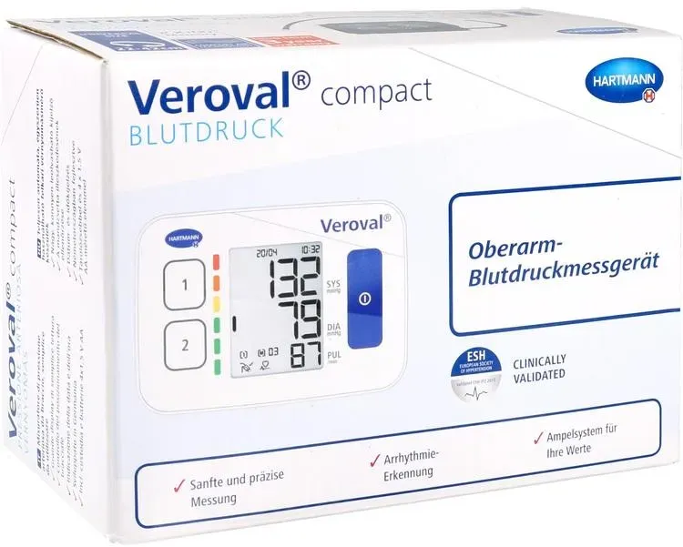 Zustand: Neu - Digitale Oberarm-Blutdruckmessgeräte - VEROVAL PAUL HARTMANN AG - Wonderful Night - EAN: 4150139045079 - PZN-13904507 1 St freiverkäuflich - 8 Händler im amazon.de Marketplace Ein solides Veroval compact Modell zu einem attraktiven Preis, perfekt für den Einstieg in die Blutdruckmessung. ![]() ![]() Hartmann VEROVAL compact Oberarm-Blutdruckmessgerät 1 St