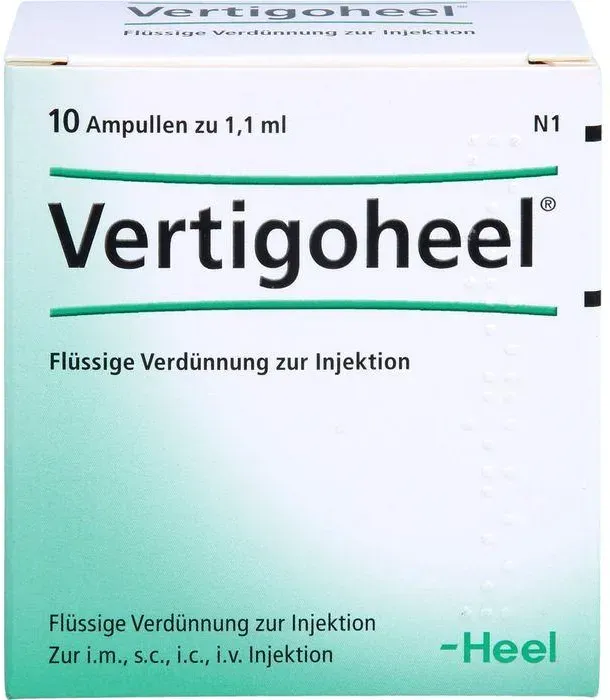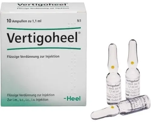 25 Händlerangebote bei billiger.de - Kategorie: Arzneimittel - Heel - Anwendungsgebiet von Vertigoheel - Arzneimittel gegen viele Formen von SchwindelHomöopathisches Arzneimittel bei SchwindelAnwendungsgebieteDie Anwendungsgebiete leiten sich von den homöopathischen Arzneimittelbildern ab.Dazu gehören: Verschiedene Schwindelzustände.Wirkstoffe / Inhaltsstoffe / Zutaten7.7 mg Anamirta cocculus (hom./anthr.)1.1 mg Ambra grisea (hom./anthr.)1.1 mg Conium maculatum (hom./anthr.)1.1 mg Petroleum rectificatum (hom./anthr.)Natrium chlorid Lösung, isotonisch Hilfstoff (+)GegenanzeigenBei bekannter überempfindlichkeit gegen einen der Inhaltsstoffe sollte dieses Produkt nicht angewendet werden. DosierungSoweit nicht anderes verordnet:Erwachsene und Jugendliche ab 1 n:Bei anfallsweisem Schwindel täglich 1 Ampulle i.m., s.c., i.c. oder i.v. injizieren.Eine über eine Woche hinausgehende Anwendung sollte nur nach Rücksprache mit einem homöopathisch erfahrenen Therapeuten erfolgen.Bei chronischen Verlaufsformen 3- bis 1-mal wöchentlich 1 Ampulle i.m., s.c., i.c. oder i.v injizieren.Bei Besserung der Beschwerden ist die Häufigkeit der Anwendung zu reduzieren. Dauer der BehandlungWie alle Arzneimittel sollten auch homöopathische Arzneimittel ohne ärztlichen Rat nicht über längere Zeit angewendet werden. Hinweise für die AnwendungWenden Sie nicht die doppelte Dosis an, wenn Sie die vorherige Anwendung vergessen haben. Wenn Sie weitere Fragen zur Anwendung des Arzneimittels haben, fragen Sie ... Dieses Angebot ist empfehlenswert, da es Vertigoheel Ampullen in der 10er Packung zu einem sehr günstigen Preis anbietet. ![]() ![]() Vertigoheel 10 ST