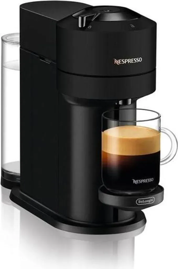 De'Longhi - EAN: 8004399015838 - Kapselmaschine Nespresso VERTUO Next von DeLonghi, WeißEine große Auswahl an Kaffeesorten: von Espresso und perfekt für den Genuss mit Milch oder Eis geeigneten Sorten bis hin zu Kaffees mit extra viel Koffein.VERTUO - ein System für bis zu 5 Tassengrößen: Bereiten Sie eine perfekte Tasse Espresso (40 ml), Double Espresso (80 ml), Gran Lungo (150 ml), Mug(230 ml) oder eine ganze Karaffe (535 ml) zu. Eine großzügige Schicht Crema, die beim Umrühren die Aromen des köstlichen Kaffees entfaltet. Die Aromen werden in den Kapseln unmittelbar nach der Röstung und dem Mahlen versiegelt.Schlankes Design: Verchromte Akzente und Premium-Farben bei Premium-Versionen. Chromfarben bei der Deluxe-Version.Die neuste Technologie: Für ein perfektes Ergebnis werden die Zubereitungsparameter automatisch für jeden Kaffee angepasst. Dank intelligenter Bluetooth -Technologie und WLAN sorgt die VERTUO Next dafür, dass Sie mit automatischen Software-Updates immer das beste und aktuelle Kaffee-Erlebnis erhalten.Die Kapseln werden mit mindestens 80% recyceltem Aluminium hergestellt, einem Material, welches bei entsprechender Entsorgung immer wieder recycelt werden kann.Exklusiv entwickelt für Nespresso VERTUO Kapseln. ProduktbeschreibungVERTUO Next ist für höchste Ansprüche gemacht. Mug am Morgen, Espresso nach dem Mittagessen und Gran Lungo am Nachmittag? Die VERTUO Next erfüllt alle Ihre Wünsche. Damit Sie selbst entscheiden können, wie Sie Ihren Kaffee genießen ... Diese Kapselmaschine in Schwarz ist eine solide Wahl für alle, die eine zuverlässige Vertuo Next ENV120 suchen, auch wenn der Preis mit 152.82 Euro etwas höher liegt. ![]() ![]() De'Longhi Nespresso Vertuo Next ENV120BM, Kapselmaschine, Schwarz
