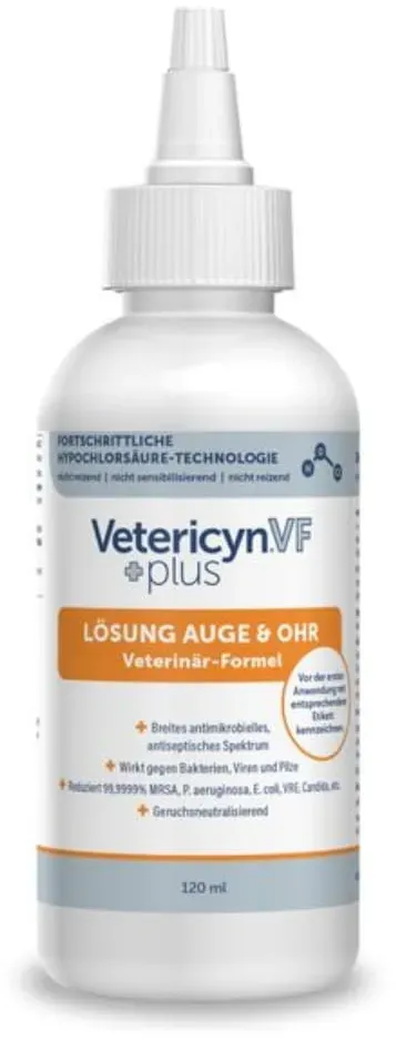 ![]() ![]() ecuphar Vetericyn VF +Plus | 120 ml | Augen- & Ohrenreiniger für alle Tiere | Enthält weder Alkohol, Steroide noch Antibiotika | Zum Reinigen & Spülen von Haut & Schleimhaut