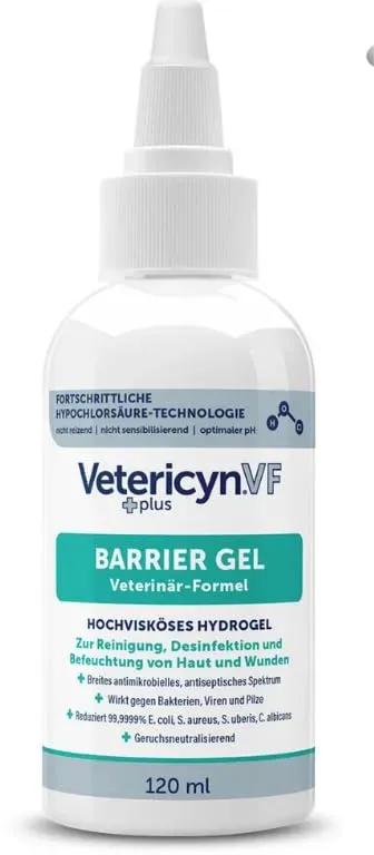 ![]() ![]() Vetericyn VF Plus Barrier Gel | 120ml | Zur Befeuchtung von Wunden und stark beanspruchten Hautpartien | Für alle Tierarten in Allen Lebensstadien | Für alle Hauttypen