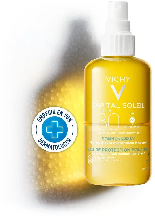 Kategorie: Sonnenpflege - Vichy - GTIN:3337875810869 - Vichy Capital Soleil Spray SPF50+ ist ein leichter, unsichtbarer Sonnenschutz für Gesicht und Körper, der mit Netlock-Technologie vor UVA-, UVB-Strahlen und oxidativem Stress schützt. Er hydratisiert, fettet nicht, ist hypoallergen und für empfindliche Haut geeignet. - 15,99 Euro bei Joybuy - gefunden von billiger.de Dieses Sonnenspray mit Hyaluron und LSF 30 bietet Feuchtigkeit und Schutz für 16.32 Euro. ![]() ![]() Vichy Ideal Soleil Sonnenspray+Hyaluron LSF 30 200 ml Spray