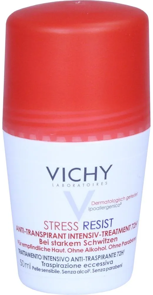 20.32 / 100 ml - Kategorie: Deodorants - Vichy - GTIN:3337871324001 - PZN:11594439 - VICHY DEO Stress Resist 72h 50 ml - 10,16 Euro bei Preisapo - gefunden von billiger.de Dieses Angebot von DocMorris ist preiswert für ein einzelnes 50ml Vichy Stress Resist Deo. ![]() ![]() Vichy Deodorant Roll-On Stress Resist Anti Transpirant 72h 50 ml
