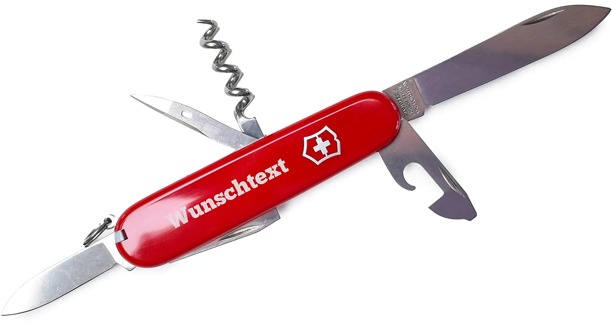 Kategorie: Taschenmesser - Victorinox - GTIN:7611160104410 - FUNKTIONEN: Taschenmesser 18 Funktionen wie, hergestellt in der Schweiz: Zahnstocher; kleine Klinge; Kapselheber; Ring; Druckkugelschreiber; Schere GESCHENKE FüR MäNNER: Das originale Schweizer Taschenmesser ist das Perfekte Geschenk für Deinen Mann. Durch die individuelle Namensgravur machst Du es zu einem einzigartigen Unikat und einem lebenslangen Begleiter QUALITäT: Victorinox ist der Inbegriff von Qualitätsmessern. Das Schweizer Unternehmen fertigt einige Teile des Messers nach wie vor von Hand. Dadurch ist das Klappmesser ein beliebtes Geschenk für den Mann DIAMANTGRAVUR: Wir gravieren den Namen Deines Lieblings mit modernster Lasertechnik. Die Gravur ist beständig und lässt sich nicht mehr lösen. Durch die vielen Funktionen wird das Messer gerne für Outdoor - Zwecke verwendet JETZT ANPASSEN: Du bist vermutlich auf das Produkt gestoßen, weil Du nach ' Victorinox Messer Taschenmesser ', ' Victorinox Klappmesser ', ' Messer Geschenk ', oder nach ' Personalisierte Messer ' gesucht hast. Klicke auf jetzt anpassen und gestalte Dein Unikat - 40,98 Euro bei Amazon Marketplace Home - gefunden von billiger.de Ein personalisiertes Spartan Wood mit Gravur, das sich hervorragend als individuelles Geschenk eignet. ![]() ![]() personalisiertes Taschenmesser - Victorinox Spartan eBay Wood Nussbaum mit Namen Gravur