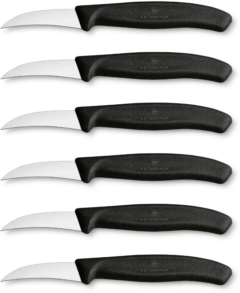 Verfügbarkeit: Auf Lager - Kategorie: Küchenmesser - Victorinox - GTIN:7611160003126 - Für raffinierte Schnitzereien, phantasievolle Garnierungen und anspruchsvolle Dekorationen Messungen: 188 x 20 x 10,6 mm Hochwertige Verarbeitung Made in Switzerland Von Victorinox - die Hersteller des offiziellen Schweizermessers - 8,80 Euro bei Amazon Marketplace Home - gefunden von billiger.de Dieses schwarze Standard Tourniermesser ist mit 8,90 Euro eine solide und spülmaschinengeeignete Option. ![]() ![]() Victorinox, 5.0503, Standard, Tourniermesser, Extra scharfe Klinge, mit geradem Schliff, robuster Kunststoff-Griff, Schwarz, Made in Switzerland, Spülmaschinengeeignet