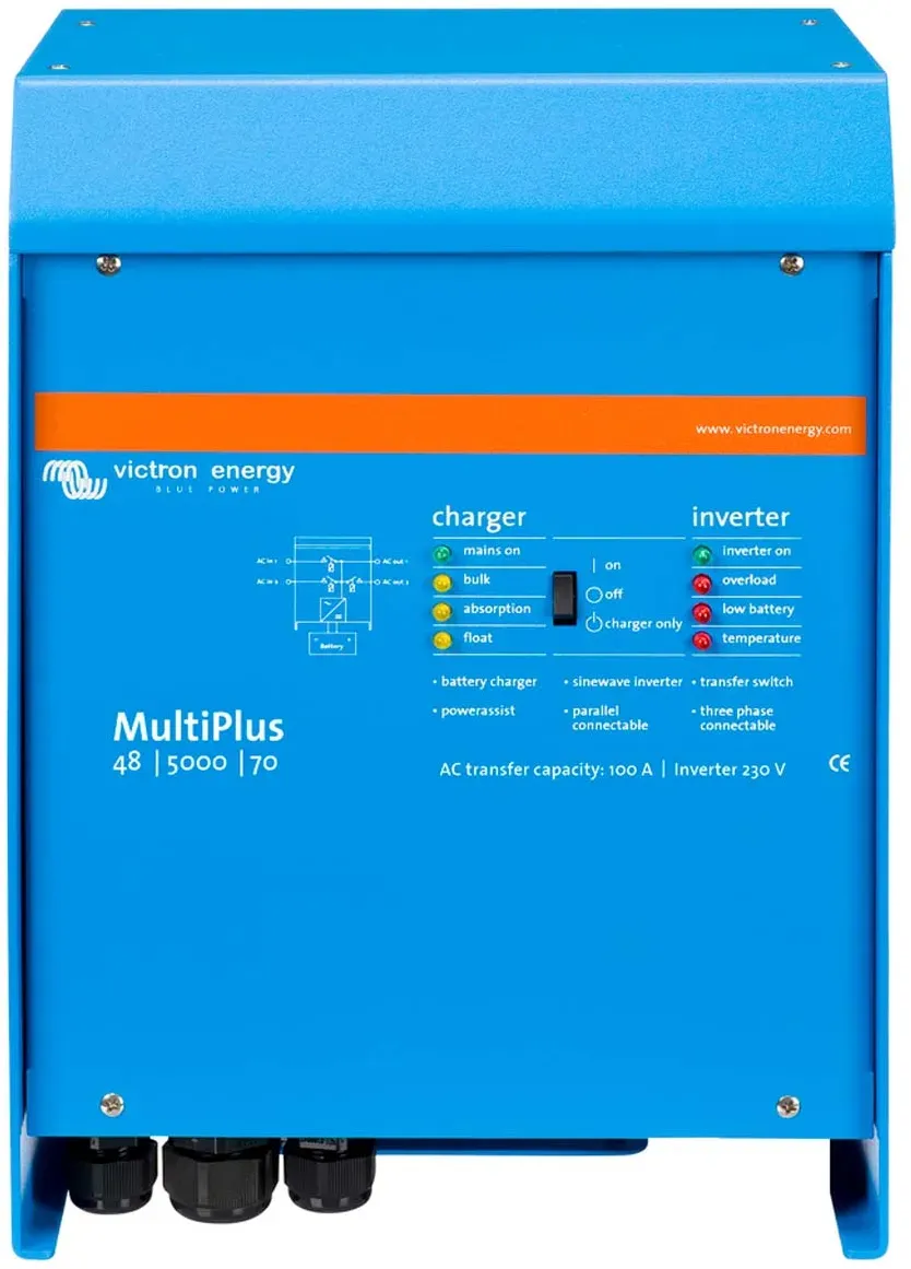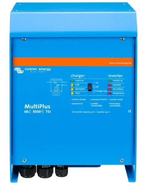 Zustand: Neu - Deep-Cycle-Batterien - Victron Energy - €ŽPMP485021010 - EAN: 5060357596484 - Victron Energy MultiPlus 48/5000/70 100 230V VE.Bus PMP485021010 Wechselrichter Victron Energie - Verkäufer: Kemper Handels GmbH im amazon.de Marketplace Ein hochwertiges Angebot für den Victron MultiPlus 48/5000/70-100, das eine hohe Leistung und Vielseitigkeit bietet. ![]() Wechselrichter VICTRON ENERGY '»Inverter / Charger Victron MultiPlus 48/5000/70-100«', blau, B:32,8cm H:24cm L:44,4cm, Aluminium, Wandler, 1600W - 24V DC zu 230V AC / 50Hz (Inverter)