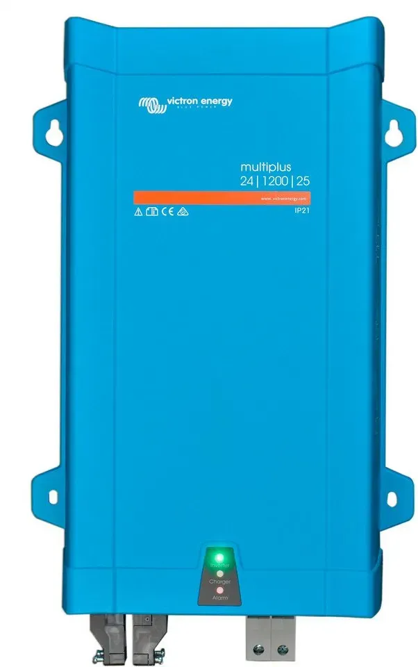 22 Händlerangebote bei billiger.de - Kategorie: Wechselrichter - Victron Energy - Der Victron Energy MultiPlus ist ein leistungsfähiger 12-Volt 800VA 35 amp 230V Wechselrichter mit reiner Sinuswelle, ein fortschrittlicher Batterielader, der die adaptive Ladetechnologie nutzt, und ein Hochgeschwindigkeits-Wechselspannungs-Transferschalter in einem einzigen kompakten Gehäuse Mit der einzigartigen Power Assist-Funktion verhindert der MultiPlus die überlastung einer begrenzten Wechselstromquelle, wie z. B. eines Generators oder Landstromanschlusses Bei einem Netzausfall oder einer Unterbrechung der Land- oder Generatorstromversorgung wird der Wechselrichter schnell, innerhalb von 20 Millisekunden, aktiviert und übernimmt die Versorgung der angeschlossenen Verbraucher Bis zu 6 MultiPlus-Geräte können parallel geschaltet werden, um eine höhere Ausgangsleistung zu erzielen. Zusätzlich zur Parallelschaltung können drei Geräte für einen Drei-Phasen-Ausgang konfiguriert werden Eine unsachgemäße Installation kann gefährlich sein. Wenden Sie sich bitte an einen zugelassenen Fachmann und befolgen Sie bei der Installation alle geltenden elektrischen Vorschriften - GTIN:8719076038221 Mit 1000W Leistung und 24V Batteriespannung ist dieser MultiPlus eine effiziente Lösung für diverse Anwendungen. ![]() ![]() Victron Energy MultiPlus 24/1200/25 Wechselrichter 1000 W