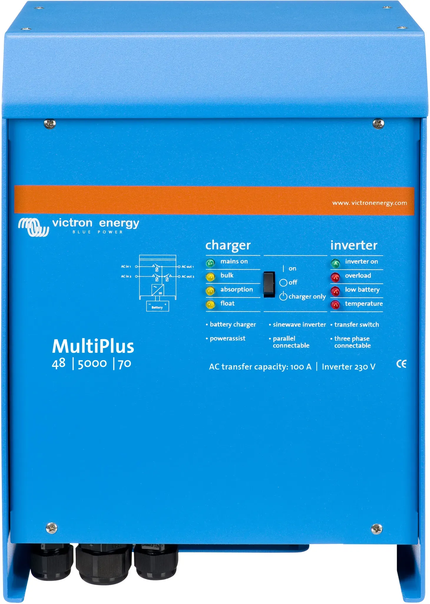 11 Händlerangebote bei billiger.de - Kategorie: Wechselrichter - Victron Energy - Der VICTRON ENERGY Multiplus 12/2000/80-32 Batterie-Wechselrichter Blue ist ein vielseitiger und hochwertiger Wechselrichter, der für netzunabhängige und Notstromanwendungen entwickelt wurde. Dieses Gerät kann Gleichstrom aus einer Batteriebank in Wechselstrom umwandeln, um verschiedene Elektronikgeräte und Haushaltsgeräte mit Strom zu versorgen.Mit einer Nennleistung von 2000 Watt und einer Dauerleistung von 80 Ampere kann dieser Wechselrichter eine Vielzahl von Leistungsanforderungen bewältigen. Er verfügt über ein integriertes Ladegerät, das ein einfaches Aufladen der angeschlossenen Batteriebank ermöglicht und eine zuverlässige und konstante Stromversorgung gewährleistet.Der VICTRON ENERGY Multiplus-Wechselrichter bietet außerdem erweiterte überwachungs- und Steuerungsfunktionen, mit denen Benutzer die Leistung überwachen und Einstellungen über das integrierte Display-Panel anpassen können. Sein kompaktes und robustes Design macht ihn ideal für den Einsatz in verschiedenen Umgebungen, von netzunabhängigen Kabinen bis hin zu Notstromsystemen für Privathaushalte und Unternehmen.Insgesamt ist der VICTRON ENERGY Multiplus 12/2000/80-32 Batterie-Wechselrichter Blue eine zuverlässige und effiziente Lösung für die Bereitstellung zuverlässiger Stromversorgung, wo immer sie benötigt wird - GTIN:8719076052135 Ein 48V Wechselrichter mit 4000W Leistung, der sich für anspruchsvollere Off-Grid- oder Backup-Systeme eignet. ![]() ![]() Victron Energy MultiPlus 48/5000/70-100 Wechselrichter 4000W