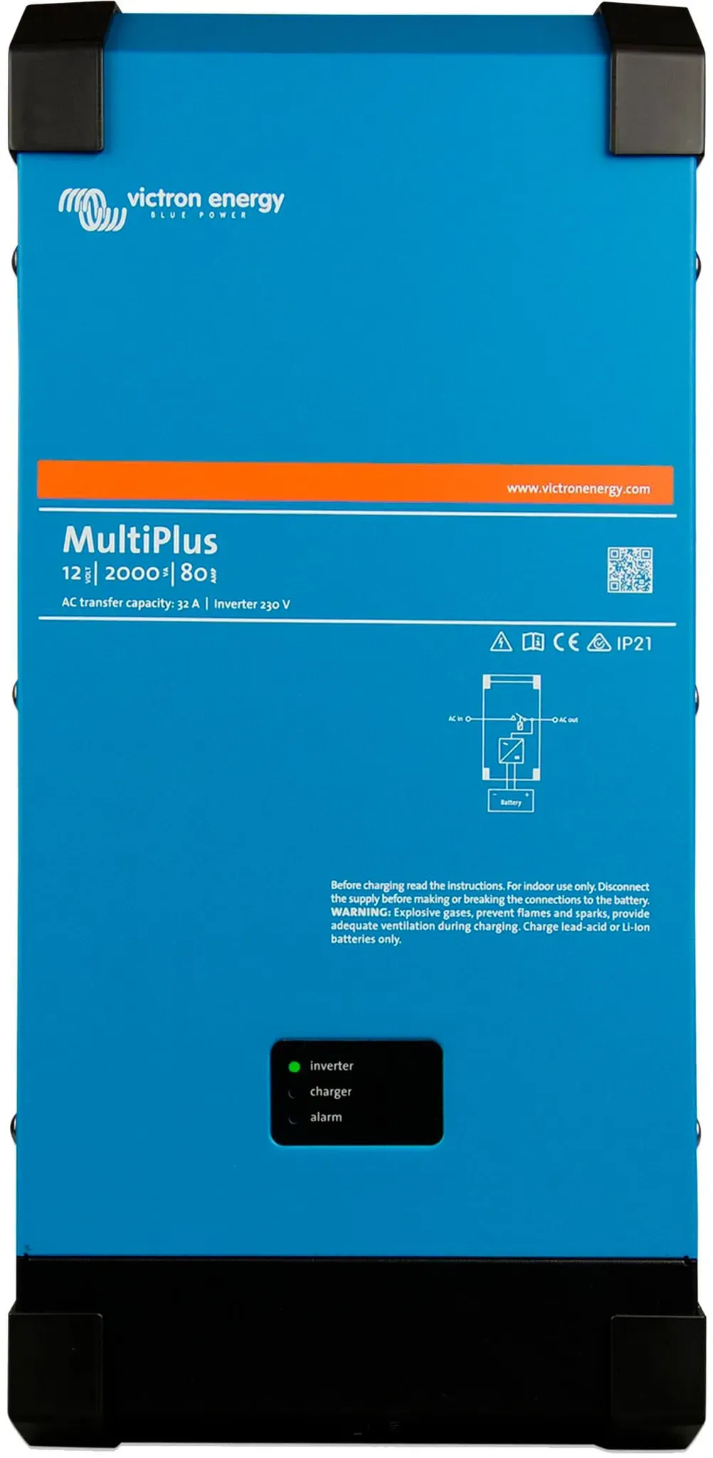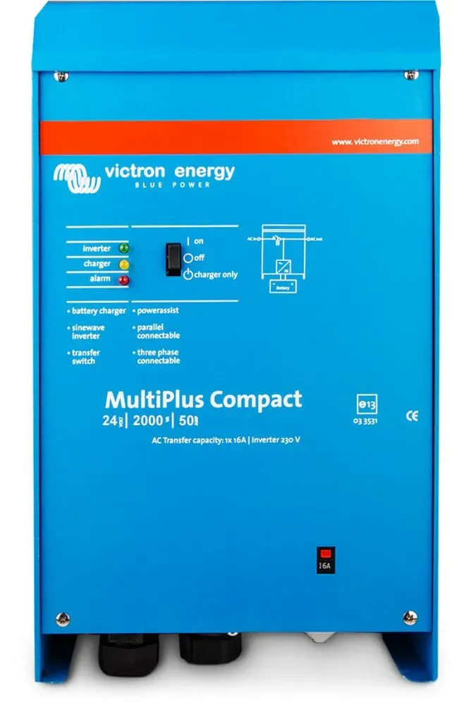 14 Händlerangebote bei billiger.de - Kategorie: Wechselrichter - Victron Energy - Der Multiplus C 24/2000/50 von Victron Energy ist eine Gerätekombination aus 24V 1600W Sinus Wechselrichter und Batterie-Ladegerät. Das fest integrierte Batterieladegerät leistet beachtliche 50A womit auch große Batterien schnell voll geladen werden können, wenn Land-/Netzstrom zur Verfügung steht. Der im Multiplus verbaute 24V Sinus Spannungswandler wandelt Ihren Strom aus der Batterie in 230V Wechselstrom um. Dank der echten Sinuswelle ist die Stromqualität auch für empfindliche elektronische Geräte perfekt geeignet. umfassend und flexibel einsetzbarDa er neben Wechselrichter und Ladegerät auch noch über einen blitzschnellen 30A Transferschalter verfügt, ist er ein idealer Wechselrichter für die Bereiche Wohnmobil, Boot oder Yacht und den netzgekoppelten Bereich der Unterbrechungsfreien Stromversorgung im Falle von Netzschwankungen oder Stromausfällen. Auch für den Einsatz in netzgekoppelten Eigenverbrauchsanlagen die nur Strom vom Versorger ziehen wenn der Batteriestrom nicht mehr ausreicht, oder als USV Lösung, in der die Multiplus einspringen wenn der Strom vom Netzbetreiber plötzlich ausfällt und so für eine unterbrechungsfreie Stromversorgung sorgen. wesentliche Leistungsmerkmale- 1600W Dauerleistung und 4000W Spitzenleistung, für 24V Batteriespannung- Gerätekombination aus Wechselrichter mit Transfer-Switch und 50A Batterieladegerät- liefert reinste 230V Sinusspannung und eine saubere ... Dieser 12V Wechselrichter mit 2000W Leistung ist ideal für größere 12V-Systeme, die viel Energie benötigen. ![]() ![]() Victron Energy MultiPlus 12/2000/80-32 Wechselrichter 2000 W 12 V