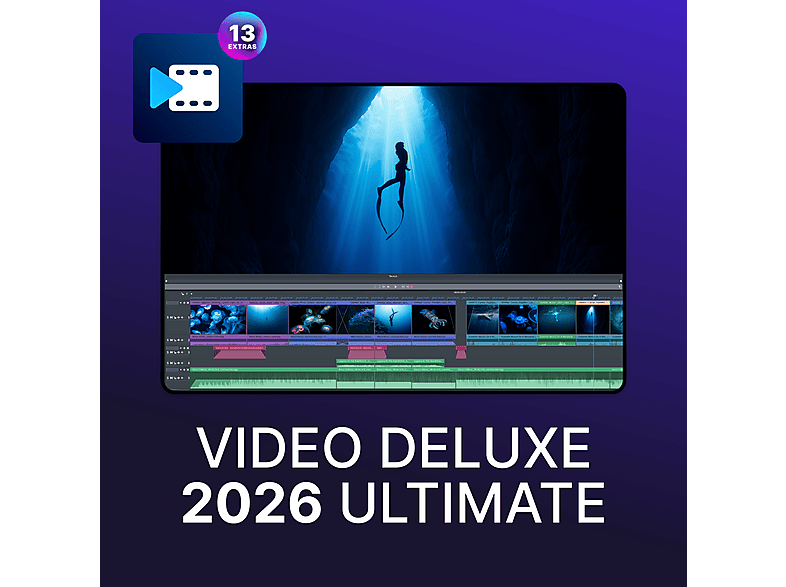 Kategorie: Videobearbeitungssoftware - Magix - GTIN:0639191551529 - MAGIX Video deluxe 2026 Ultimate Das ultimative Toolkit für grenzenloses Videoschnittvergnügen Wer sagt, dass professionelle Videobearbeitung zwangsläufig komplex und zeitaufwendig sein muss? Mit MAGIX Video deluxe 2026 Ultimate erhalten Anwender eine leistungsstarke und zugleich benutzerfreundliche Software, die höchste Ansprüche an Funktionalität und Bedienkomfort vereint. Ob ambitionierter Einsteiger oder erfahrener Profi diese Lösung bietet Ihnen alle Werkzeuge, um Ihre kreativen Projekte effizient und auf professionellem Niveau umzusetzen. Die neueste Version von MAGIX erweitert das bewährte Leistungsspektrum der Plus- und Premium-Editionen um 13 exklusive Zusatzpakete und macht MAGIX Video deluxe 2026 Ultimate damit zur umfassendsten Schnittsoftware auf dem Markt. Für Anwender, die in Sachen Qualität und Flexibilität keine Kompromisse eingehen möchten, ist diese Edition die ideale Wahl. Dein Projekt, dein Tempo, deine Tools Mit MAGIX Video deluxe 2026 Ultimate bekommst du nicht nur ein leistungsstarkes Schnittprogramm du erhältst einen durchdachten Werkzeugkasten, der kreative Prozesse vereinfacht, automatisiert und gleichzeitig deinen individuellen Arbeitsstil unterstützt. Von smarter Medienverwaltung bis zu präzisen Untertiteln: Entdecke, wie intelligent Videobearbeitung heute funktioniert. Gestalte deinen Schnitt so individuell wie dein Projekt Du willst schnell ein Ergebnis oder lieber jede Szene ... ![]() ![]() MAGIX Video Deluxe 2026 Ultimate