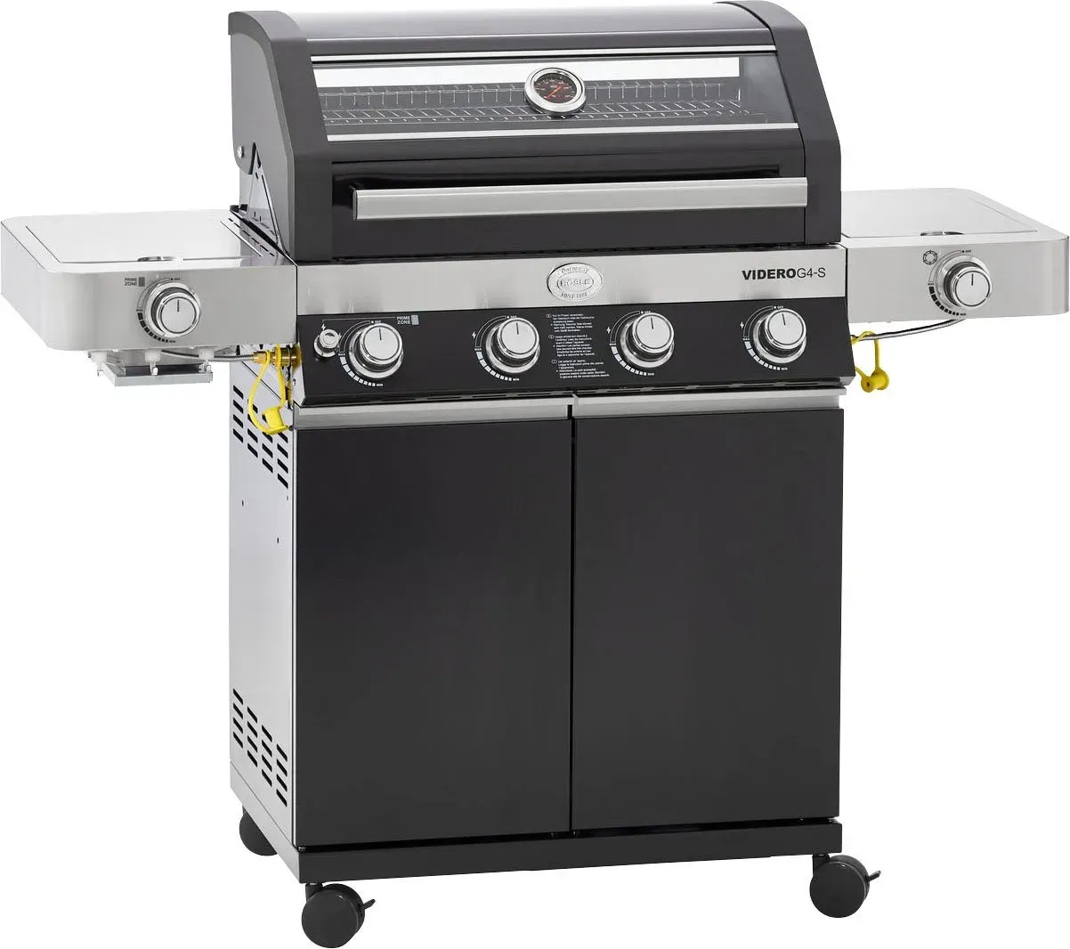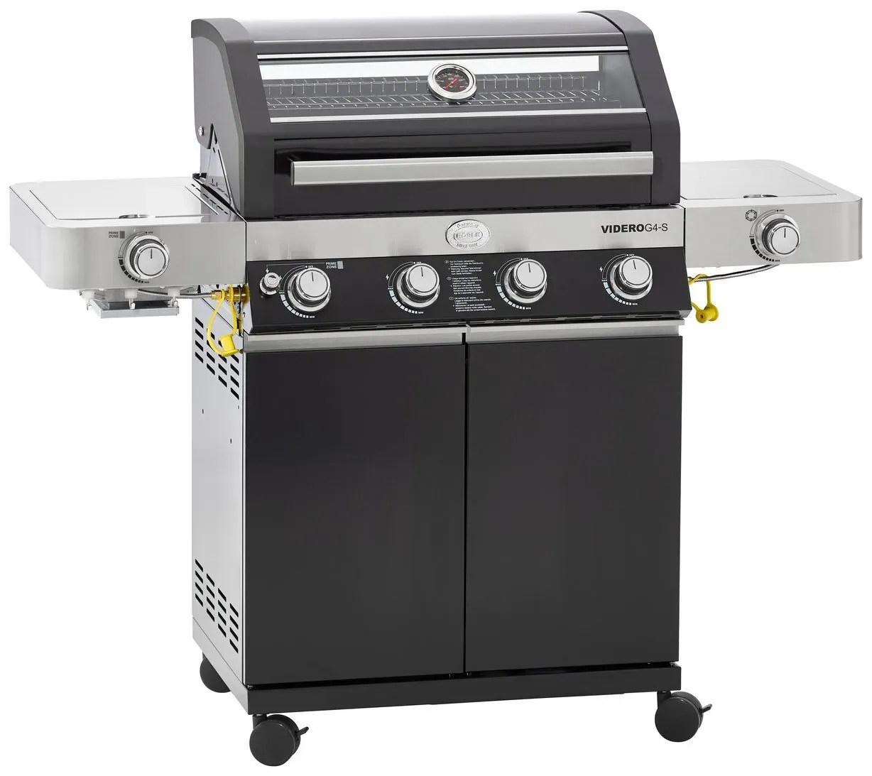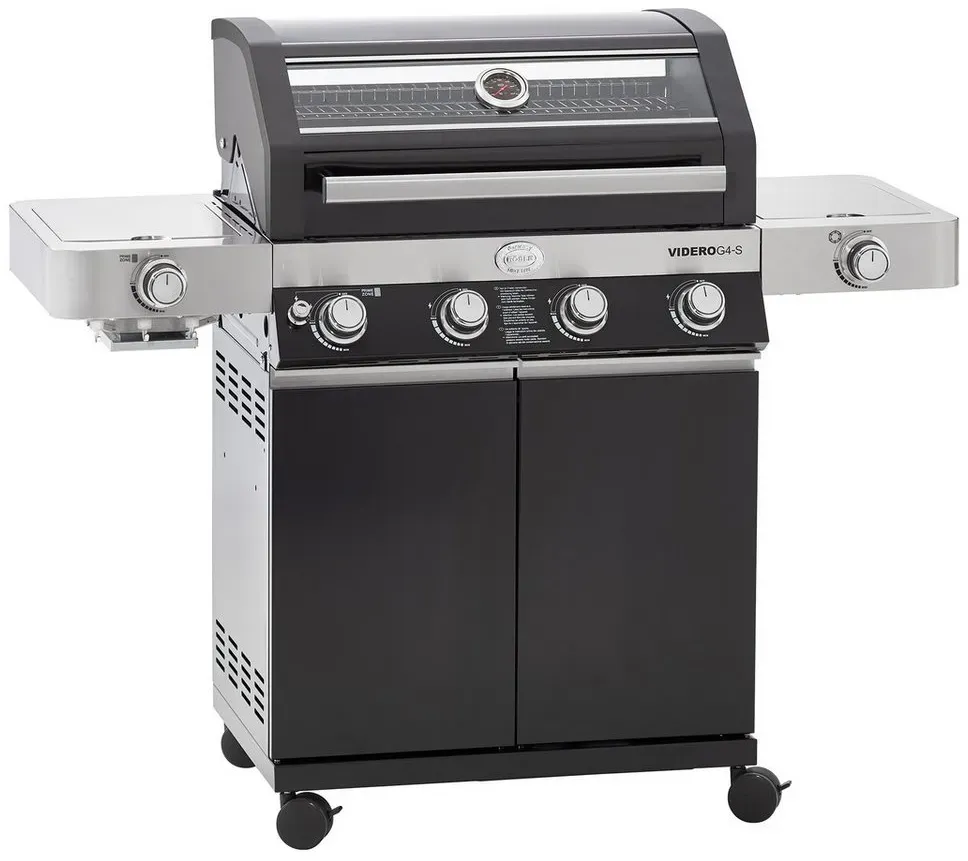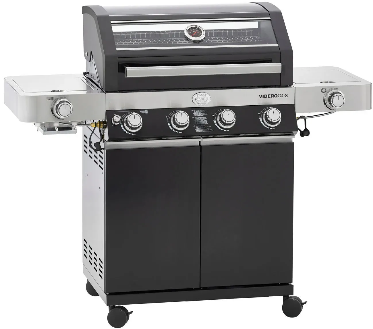 ![]() ![]() RÖSLE Gasgrill BBQ-Station VIDERO G4-S Schwarz, Grill mit 4 Edelstahlbrennern, extra Primezone und Seitenbrenner, klappbare Seitentische, VARIO+, pulverbeschichteter Stahl