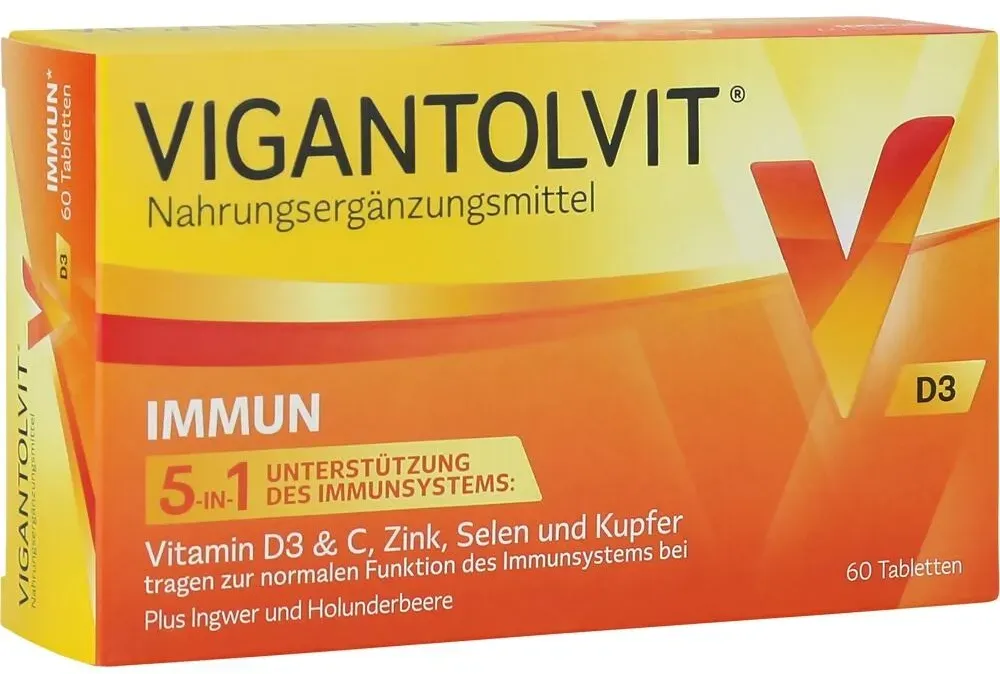 Vigantolvit immun META PreisvergleichMit dem Meta-Preisvergleich suchen Sie gleichzeitig bei den großen Preisvergleich Portalen!Jetzt live Suche nach vigantolvit immun starten! Vigantolvit immun KaufberatungVigantolvit Immun ist ein Nahrungsergänzungsmittel in Form von Filmtabletten, das speziell zur Unterstützung des Immunsystems entwickelt wurde. Es enthält eine 5-in-1 Formel mit den Wirkstoffen Vitamin D3, Vitamin C, Zink, Selen und Kupfer, die zusammen die normale Funktion des Immunsystems fördern, Zellen vor oxidativem Stress schützen und den Energiestoffwechsel unterstützen[1][3][5][7]. Wichtig bei der Anwendung ist: