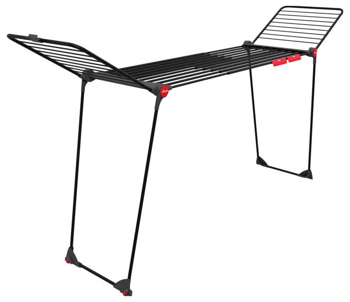 EAN: 4023103257740 - Mit dem Vileda Infinity Flex Ultimate ist das Trocknen Ihrer Wäsche stilvoller und komfortabler denn je. Mit seiner attraktiven schwarzen Farbe verleiht er Ihrem Zuhause einen Hauch von moderner Eleganz und Raffinesse, während Sie Ihre Wäsche trocknen. Der Vileda INFINITY flex Ultimate ist ein flexibler Wäschetrockner mit ausziehbarem Mittelteil, aufklappbaren Flügeln auf maximal 304cm Länge. Die maximale Leinenlänge von 30 m fasst bis zu drei Waschmaschinenladungen. Je nach Platzbedarf kann man die Länge von 216 cm auf bis 304 cm ausziehen. Ideal für das Trocknen großer Wäschestücke, wie Tischdecken und Bettlaken. Die besonders hohen Beine sind optimal für lange Wäschestücke geeignet. Die Höhe der Flügel ist ideal zum Trocknen von langen Hosen. Die extra dicken Trockenstäbe im Mittelteil und an den Flügeln verhindern Falten beim Trocknen. Die zwei Kleinteilehalter bieten zusätzlichen Platz für kleine Wäschestücke, wie Socken und Unterwäsche. Die parallelen Standbeine aus robustem Stahl und ein extra stabiles Gelenk sorgen für einen stabilen Stand Die Rollen inkl. Kratzschutz ermöglichen einen kinderleichten und sicheren Transport überall hin, auch im beladenen Zustand. Nach Gebrauch lässt er sich, dank des Einrastsystem an den Flügeln einfach und platzsparend zusammenklappen. Hergestellt in Italien. - bei conrad.de - aus Yadore Produktdaten ![]() ![]() Vileda Wäscheständer Vileda Infinity Flex Ultimate Wäscheständer 1 St. 179621