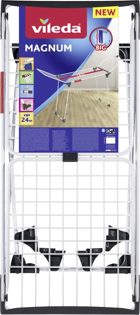 Zustand: Neu - Wäscheständer - Vileda - 162649 - EAN: 4023103217386 - Einzigartig: Extra große Leinenlänge 24m mit XXL-Leinen für faltenfreies Trocknen Extra breit +20%* und extra hoch +15%* - optimal für große Wäschestücke Inklusive Halterung für kleine Wäschestücke Kratzschutz und Rollen für den einfachen Transport - auch im beladenen Zustand Sicherer Stand durch Einrasten der Beine - Verkäufer: hitseller-shop im amazon.de Marketplace ![]() ![]() Vileda Wäscheständer Vileda Wäscheständer Magnum