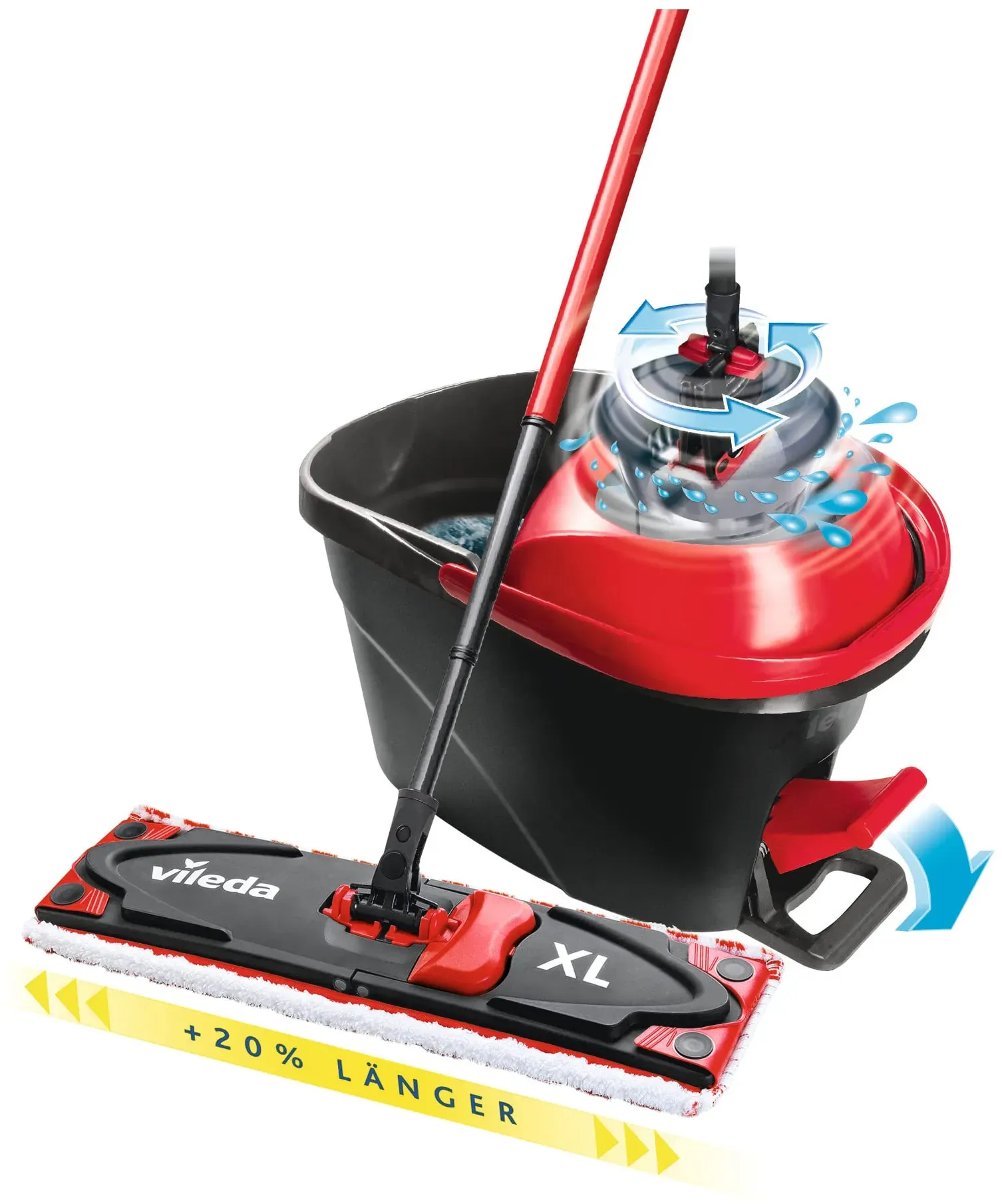 Kategorie: Sonstige Reinigungsgeräte - Vileda - GTIN:4023103201774 - Breite , 39,5 cm, Gewicht , 1400 g, Höhe , 29,5 cm, Länge , 28 cm, Farbe , blau/rot/gelb, Material , Kunststoff, - 34,18 Euro bei OTTO - gefunden von billiger.de Dieses Ultramax Turbo XL Wischmopp Komplett Set für 45.50 Euro ist eine Premium-Option mit Teleskopstiel und Pedal für große Hartböden. ![]() ![]() Vileda Ultramax Turbo XL Wischmopp Komplett Set | XL Bodenwischer mit Teleskopstiel & Mikrofaserbezug | Eimer mit Power Schleuder & Pedal, hygienisch ohne Bücken - für große Hartböden | Eco-Verpackung