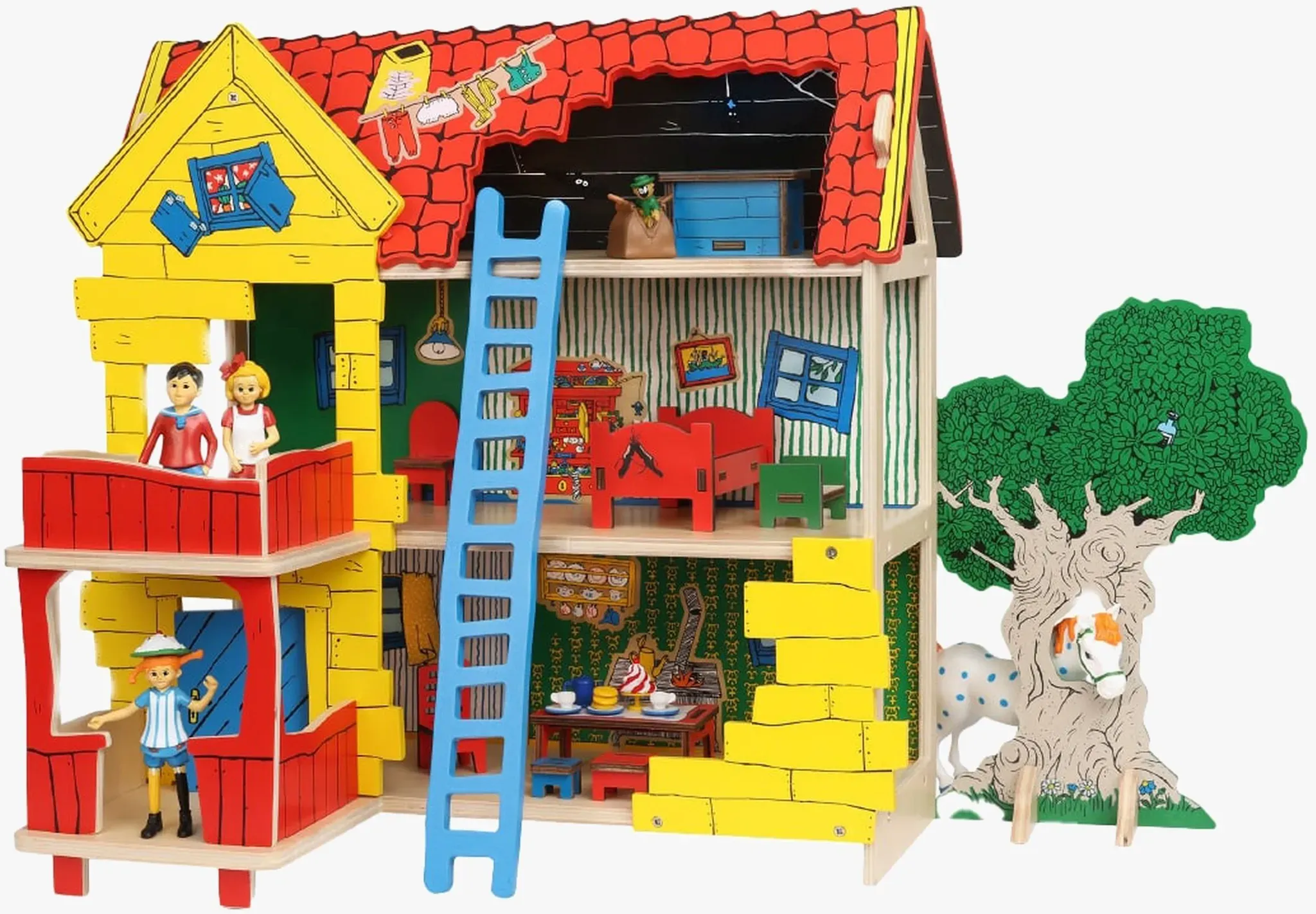 2 Händlerangebote bei billiger.de - Kategorie: Puppenhäuser - Pippi Langstrumpf - Puppenhaus von Pippi Langstrumpf in der Form der Villa Kunterbunt mit vielen tollen Spielbereichen. Perfekt für viele Stunden voller fantasievollem Spielen. - Das Puppenhaus ist an drei Seiten offen. - Drei Stockwerke. - Tür, Balkon, Veranda, Dachboden und Leiter. - Limonadenbaum, durch den die Figuren krabbeln können. - Pippi Langstrumpf-Motiv. - Farbenfrohes Design. - Figuren und Möbel nicht inklusive. - CE-gekennzeichnet. - Altersempfehlung: ab n. - Holz. - GTIN:7315624438355 Dieses Playmobil-Set ist eine beliebte Wahl für Kinder, um mit Tieren und Figuren in einer kunterbunten Villa zu spielen. ![]() ![]()
