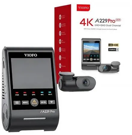 Auf Lager Versand durch AmazonVIOFO A229 Pro 4K + 2K Dual STARVIS 2, HDR Vorne hinten Dashcam Auto, Sprachsteurung & 5GHz Wi-Fi Wlan Autokamera, Ultrapräzises GPS mit CPL Filter, Super Nachtsicht 2.0, Sprachausgabe, bis 512 GB Max