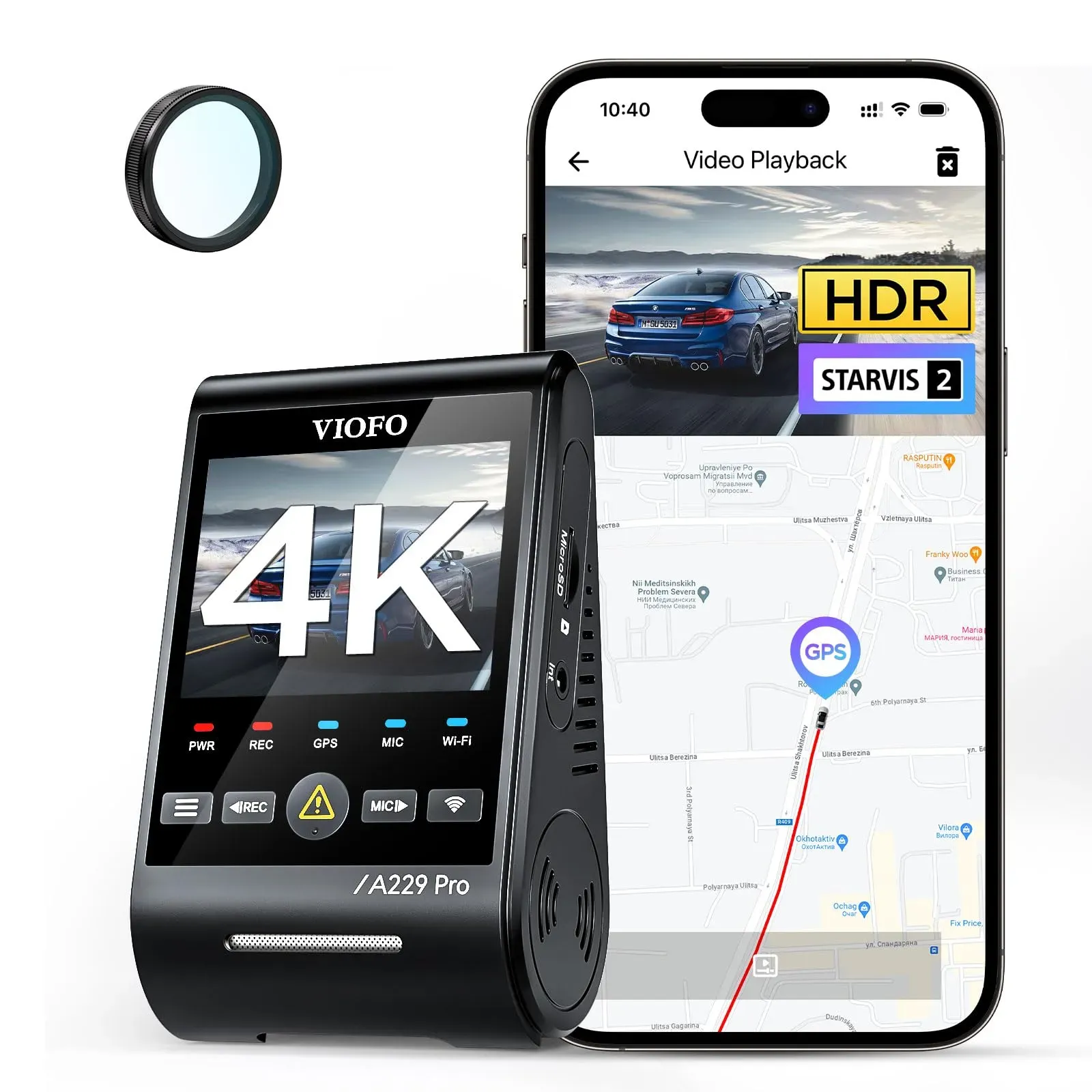 Kategorie: DashCams - VIOFO - GTIN:6972147073725 - 4K UHD@30fps Aufnahme Ausgestattet mit einer hochmodernen Kamera vorne, die die neueste STARVIS 2 Technologie einsetzt, setzt die A229 Pro Dashcam auto mit seinen unübertroffenen 4K Front neue Maßstäbe in der Branche. Er liefert eine hervorragende Videoqualität und erfasst tagsüber und nachts jedes Detail. STARVIS 2 Sensor Die A229 Pro Dash cam ist die erste Dashcam der Branche, die Spitze STARVIS 2 Bildsensor für die Frontkamera einsetzt. Der Sensor, namentlich der IMX678, bietet einen größeren Dynamikbereich und eine höhere Lichtempfindlichkeit als die STARVIS Technologie und erzeugen sowohl am Tag als auch in der Nacht viel weniger Bildrauschen und Bewegungsunschärfe bei der Aufnahme. Intelligente Sprachsteuerung auf Englisch Mit der Sprachsteuerung können Sie die Kamera durch das Sprechen von Wörtern und Befehlen auf Englisch bedienen. Mit der Sprachsteuerung können Sie jederzeit bequem Videos speichern, Tonaufzeichnungen starten und stoppen oder Fotos aufnehmen. So behalten sie Ihre Hände sicher am Lenkrad. CPL Filter Eingebaut & Sprachausgabe Ein CPL Filter kann verwendet werden, um Reflexionen und Blendungen auf Glas- und Straßenoberflächen zu reduzieren. Die Autokmaera ist mit mehrsprachiger Sprachbenachrichtigung konfiguriert und hilft Ihnen, änderungen des Einstellens wie das Ein- und Ausschalten der Audioaufnahme zu bestätigen, und erinnert Sie an wichtiege Sache wie Videoschutz und Kartenfehler. Ultrapräzises ... Ein preiswertes 2-Kanal-Modell mit 4K + 2K Auflösung, WLAN und GPS. ![]() ![]() VIOFO A229 Pro 2CH 4K + 2k Wifi Gps