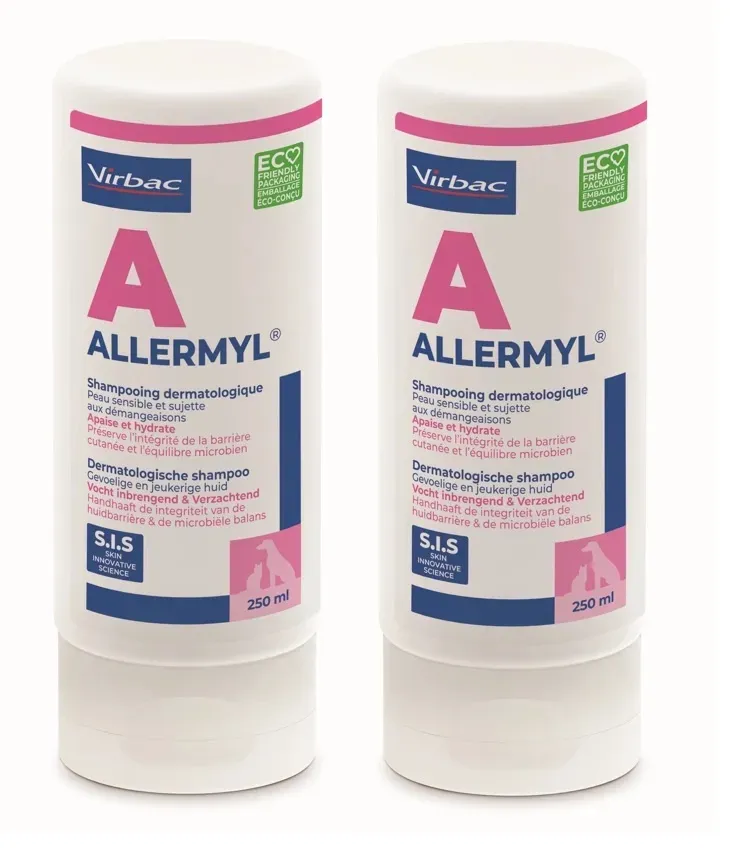 Zustand: Neu - 139,80 € / l - Shampoos Hundeshampoos - Virbac Allermyl - 338 - EAN: 3597132008723 EAN: 3597132001427 - Dermatologisches Shampoo für Hunde und Katzen geeignet Für empfindliche und juckende Hundehaut - 2 Händler im amazon.de Marketplace ![]() ![]() Virbac Allermyl Shampoo 200ml