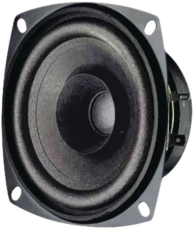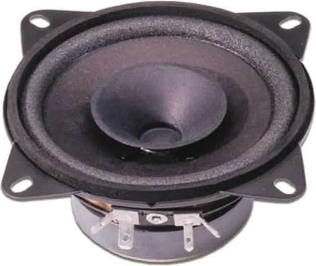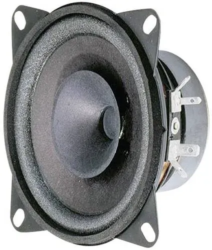 Visaton - EAN: 4007540048994 - 10 cm (4') Breitbandlautsprecher mit Hochtonkegel und Euro-Normkorb. Einfache Montage in Fahrzeugen mit Einbauorten für 10-cm-Lautsprecher. Features: Metallkorb Feuchtigkeitsimprägnierte Membran Technische Daten: Nennbelastbarkeit: 20 W Musikbelastbarkeit: 30 W Nennimpedanz: 8 Ohm übertragungsbereich (-10 dB): 95..22000 Hz Mittlerer Schalldruckpegel: 86 dB (1 W/1 m) Grenzauslenkung: +/- 2 mm Resonanzfrequenz: 120 Hz Schwingspulendurchmesser: 14 mm Wickelhöhe: 5 mm Schallwandöffnung : 94 mm Gewicht: 340 g Anschlüsse: + 4,8x0,8 mm, - 2,8x0,8 mm Temperaturbereich: -25..+70 C - bei pollin.de - aus Yadore Produktdaten Dieser Visaton FR 10 F ist eine weitere kostengünstige Option, die sich gut für einfache Audioanwendungen eignet. ![]() ![]() Visaton FR 10 F - 4 Ohm