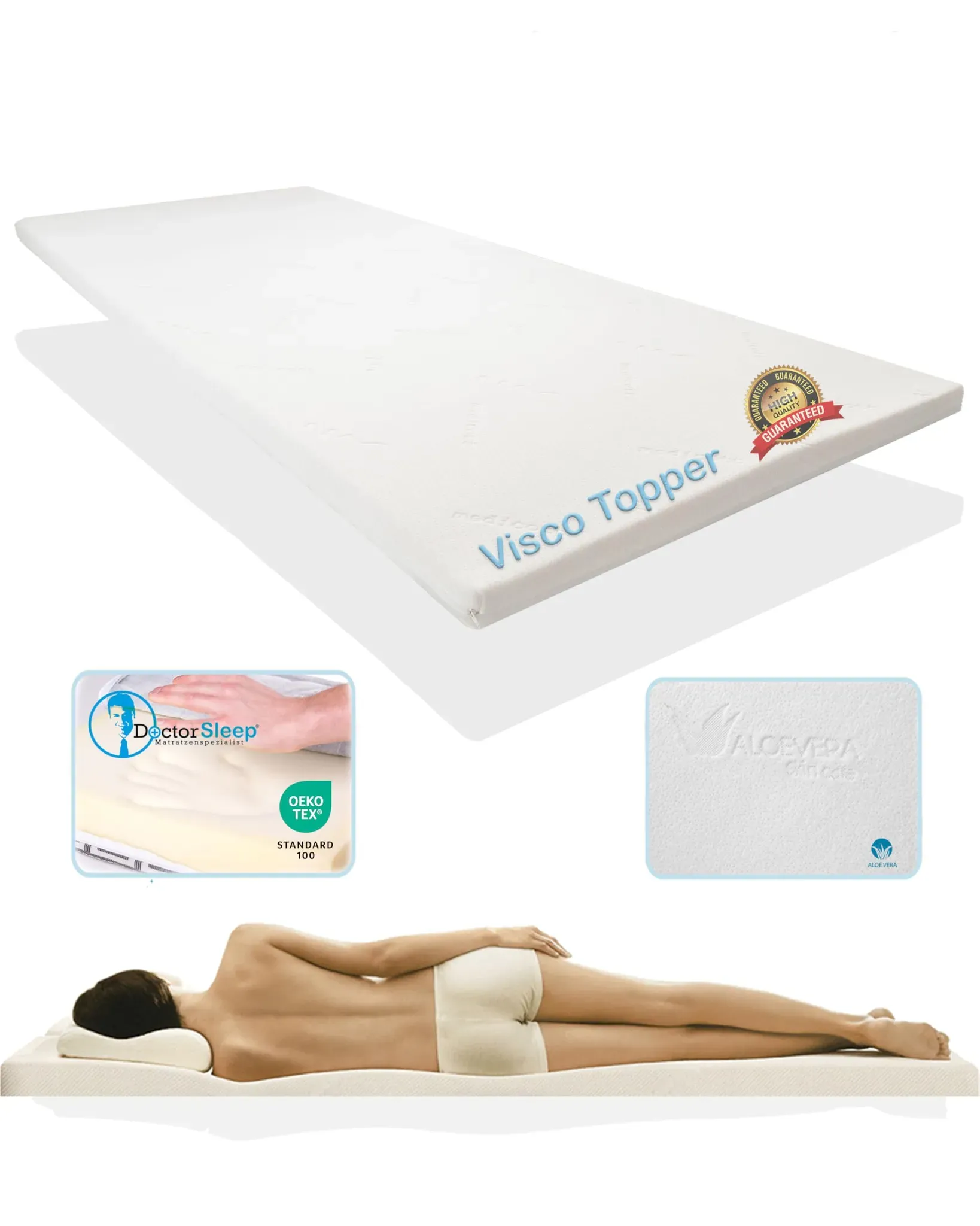 Kategorie: Matratzenschoner - Traumschlaf - GTIN:4251823144921 - Material: Kern: Viscoschaum, Bezug: 63% Polyester, 37% Viskose Verwandeln Sie Ihren Schlaf in ein Erlebnis höchsten Komforts und erholsamer Ruhe mit unserem Viskotopper mit Klimaband. Entwickelt, um Ihre Schlafqualität zu verbessern und Ihren Schlafbereich auf das nächste Level zu heben, bietet dieser Viskotopper eine perfekte Kombination aus Unterstützung, Weichheit und Atmungsaktivität. Das integrierte Klimaband fördert eine optimale Luftzirkulation und ermöglicht eine kontinuierliche Ableitung von Feuchtigkeit und Wärme. Dadurch wird ein angenehm kühles und trockenes Schlafklima gewährleistet, das Sie während der Nacht unterstützt. Der Bezug des Traumschlaf Premium Viskotoppers ist bis zu 40 C waschbar und somit einfach zu pflegen. Sie können ihn regelmäßig auffrischen und für ein sauberes Schlafumfeld sorgen, ohne auf den außergewöhnlichen Komfort verzichten zu müssen. - viele Anwendungen: zu harte Matratzen, zu festes Schlafsofa oder Couch, Verbesserung des Liegecomforts - diese viscoelastische Matratzenauflage passt sich der Körperform perfekt an - keine Besucherritze mehr bei durchgehendem Topper - ideal beim Camping für Wohnwagen und Wohnmobile weil dort die Polster meist zu fest sind - Visco-Schaumstoff ist staub und bakterienfrei und somit für Allergiker geeignet - einzigartige Druckentlastung bei geringer als auch bei starker Gewichtsbelastung - hautsympatischer Bezug aus 63% Polyester, 37% Viscose ... ![]() ![]() Premium Visco - Topper Matratzenauflage eBay Viscoschaum Topper 90x200 cm