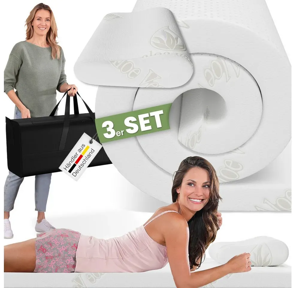 Zustand: Neu - Matratzentopper - Welldora - - EAN: 4262441891142 - œ ð„ð—ð“ð‘ð€-ðŠðŽðŒð ðŽð‘ð“ ð Üð‘ ð‡ð€ð‘ð“ð„ ðŒð€ð“ð‘ð€ð“ð™ð„ð - Dieser 5€¯cm hohe Topper aus 100€¯% Memory Foam wurde speziell für Menschen entwickelt, die unter Druckstellen leiden und ihre Matratze spürbar weicher und bequemer gestalten möchten - ganz gleich, ob Seiten-, Rücken- oder Bauchschläfer. œ ð’ð€ðð ð“, ð€ððð€ð’ð’ð”ðð†ð’ð Äð‡ðˆð†, ðƒð‘ð”ð‚ðŠð„ðð“ð‹ð€ð’ð“ð„ððƒ - Die weiche bis mittelfeste Liegefläche passt sich punktgenau an deinen Körper an. Besonders geeignet für Personen bis ca. 90€¯kg - oder für alle, die ein besonders weiches Schlafgefühl lieben. œ ðŠÜð‡ð‹ð„ððƒð„ð‘ ðŒð„ðŒðŽð‘ð˜-ð ðŽð€ðŒ - Trotz des soften Charakters bleibt das Schlafklima angenehm frisch: integrierte Gel-Partikel helfen bei der Temperaturregulierung und verhindern Wärmestau - für entspannenden Schlaf ohne Schwitzen. œ ðð€ð“Üð‘ð‹ðˆð‚ð‡ð„ð‘ ðŠðŽðŒð ðŽð‘ð“ ðŒðˆð“ ðð€ðŒðð”ð’-ð•ðˆð’ðŠðŽð’ð„ - Der luftige 3D-Komfortbezug mit hohem Bambusviskose-Anteil sorgt für hervorragende Atmungsaktivität und ein angenehm trockenes, natürliches Schlafgefühl - besonders weich und anschmiegsam. œ ð–ð€ð’ð‚ð‡ðð€ð‘, ð™ð„ð‘ð“ðˆð ðˆð™ðˆð„ð‘ð“ & ð‡ð€ð”ð“ð ... Dieser Gelschaum-Topper von Traumnacht für 86.90 Euro bietet ein Klimaband und Gel-Aktiv-Kaltschaum für optimalen Schlafkomfort. ![]() ![]()