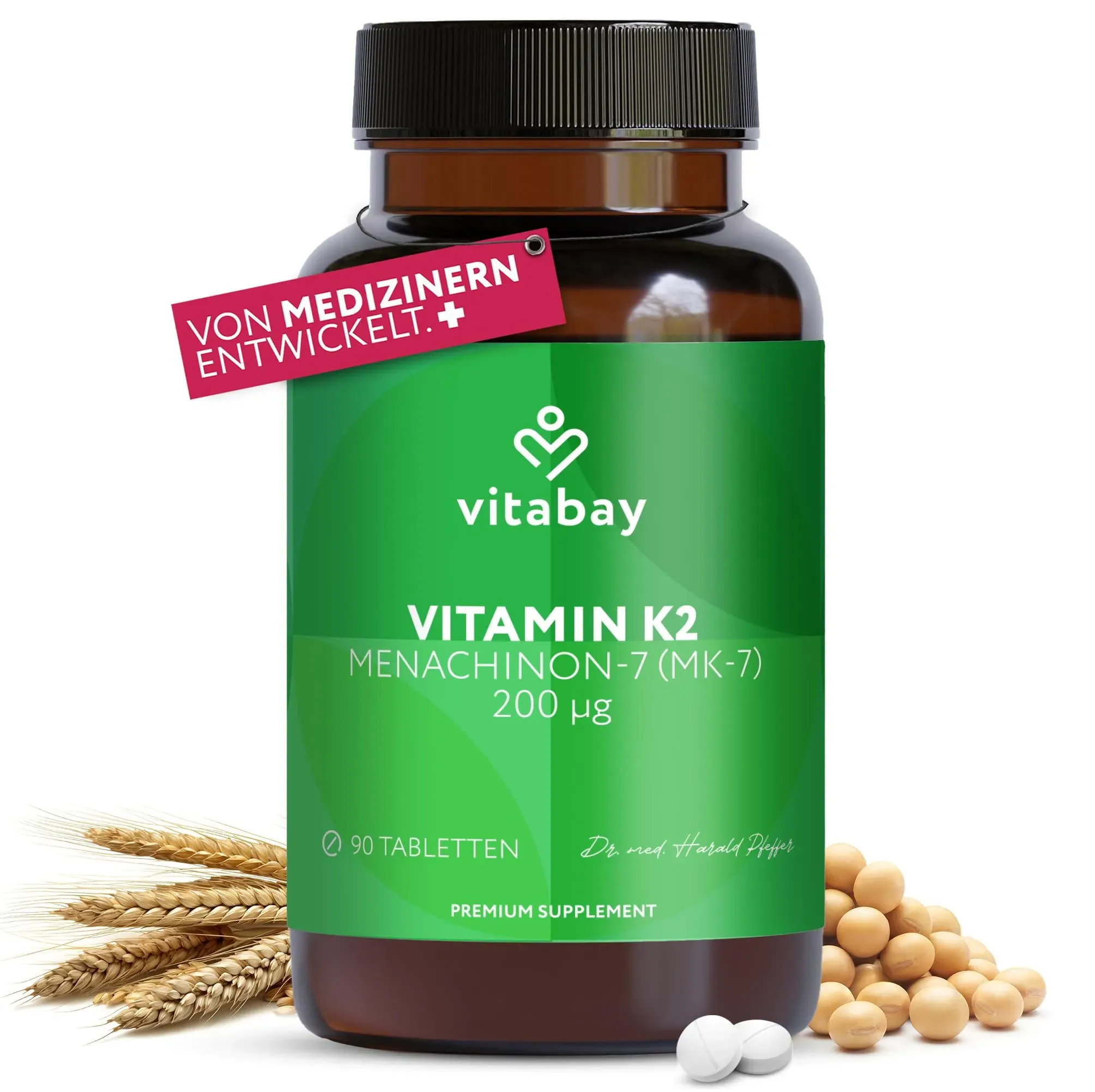 0,12 /Stück - Kategorie: Nahrungsergänzungsmittel - Vitabay - GTIN:4250556503937 - PZN:18237978 - VITAMIN K2 200 g MK-7 vegan hochdosiert Tabletten 120 St - 14,70 Euro bei medikamente-per-klick.de - gefunden von billiger.de Dieses Angebot bietet eine gute Menge an hochdosierten veganen K2-Tabletten zu einem fairen Preis. ![]() ![]() Vitabay Vitamin K2 Hochdosiert 100 g (mcg) - 120 Vitamin K2 Tabletten Vegan & Laborgeprüft - MK-7 (Menachinon-7) aus natürlichen Zutaten in All-Trans Form