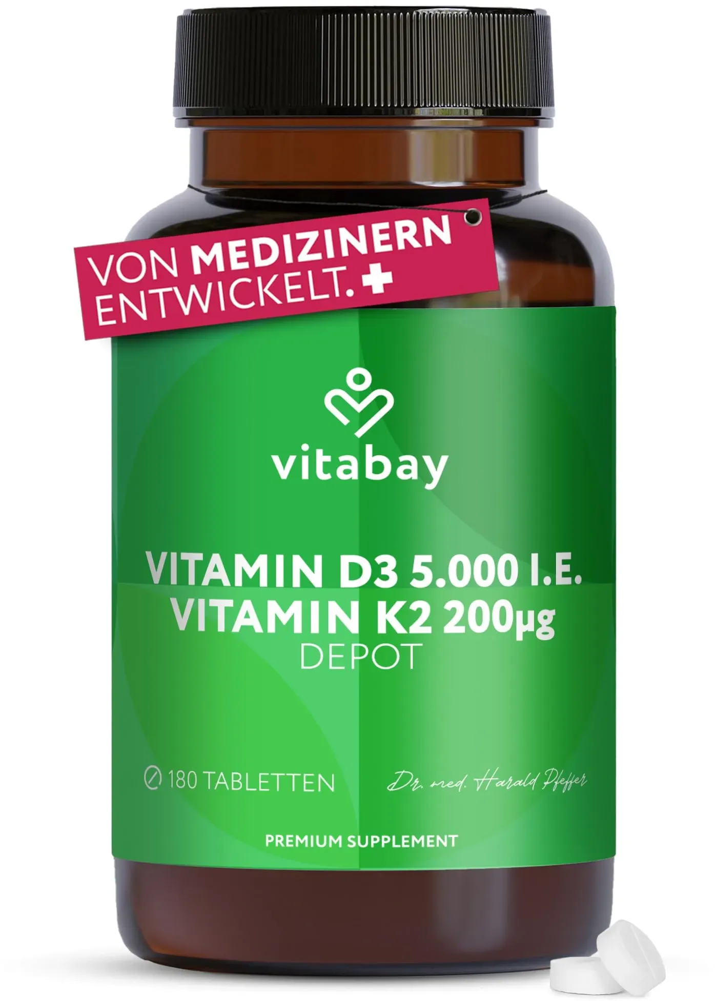 0,13 /Stück - Kategorie: Nahrungsergänzungsmittel - Vitabay - GTIN:4250556503937 - PZN:18237978 - VITAMIN K2 200 g MK-7 vegan hochdosiert Tabletten 120 St - 15,55 Euro bei Preisapo - gefunden von billiger.de Dieses Kombiprodukt aus Vitamin D3 und K2 ist ideal für eine umfassende Versorgung und bietet ein gutes Preis-Leistungs-Verhältnis. ![]() ![]() Vitabay Vitamin D3 K2 5000 IE - 180 Vegane Tabletten Vitamin D Hochdosiert - D3K2 Sonnenvitamine - Vit K2 D3 als Unterstützung für Immunsystem. Zähne. Knochen und Muskeln - Laborgeprüft