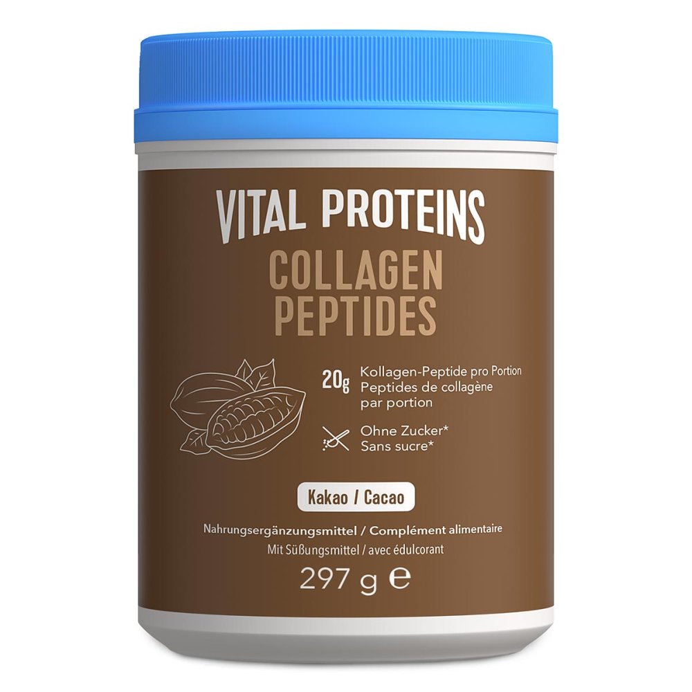 86.97 € / 1 kg - Kategorie: Nahrungsergänzungsmittel - Vital Proteins - GTIN:0857273008413 - PZN:16933573 - Nahrungsergänzungsmittel mit Kollagen-Peptiden Geschmacksneutral/Nicht aromatisiert Vital Proteins Collagen Peptides - Unser geschmacksneutrales Kollagenpulver ist die hochwertige Ergänzung für deine Ernährung. Die reinen Kollagen-Peptide lassen sich problemlos in kalte oder warme Flüssigkeiten einrühren und sind dabei völlig geschmacksneutral. Ob im Kaffee, Smoothie oder Tee ? du entscheidest. Durch die hohe Bioverfügbarkeit werden die Kollagen-Peptide optimal vom Körper aufgenommen. Unser Kollagen ist zudem Paleo-freundlich und glutenfrei. · Hydrolysiertes Kollagen Typ I und III · Hohe Bioverfügbarkeit · Eine einzige Zutat: Rinder-Kollagen-Peptide · Geschmacksneutral · Einfache Anwendung: Gut löslich in heißen & kalten Flüssigkeiten Zubereitung: 20 g (ca. 4 Esslöffel) des Pulvers in 250 ml Flüssigkeit geben. Bis zur vollständigen Auflösung des Pulvers rühren. Zutaten: Rinder-Kollagen-Peptide. Kann Milch enthalten. Lagerung: Kühl und trocken lagern. Das Produkt nicht verwenden, wenn das Sicherheitssiegel beschädigt ist oder fehlt. - 24,70 Euro bei Sanicare Apotheke - gefunden von billiger.de Dieses Kakao-Pulver für 26.99 Euro für 297g ist eine gute Option für alle, die einen leckeren Geschmack ohne Zucker wünschen. ![]() ![]() Vital Proteins Collagen Peptides Kakao 297g – Reine Kollagen-Peptide – Kakao-Geschmack – ohne Zucker – schöne Haut, Haare & Nägel – hydrolysiertes Rinderkollagen Typ 1 & 3