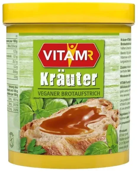 Verfügbarkeit: 1-2 Werktage - 51.12 €/kg - Kategorie: Nahrungsergänzungsmittel - Vitam - GTIN:4011437040022 - Kulinarisches Multitalent. Herzhafter Brotaufstrich und Würzmittel für Saucen, Vinaigrettes und warme Speisen €“ der Vielseitigkeit von VITAM-R sind kaum Grenzen gesetzt. Vitam-R enthält den gesamten Vitamin-B-Komplex der Hefe. Diese Vitalstoffe, zusammen mit essentiellen Aminosäuren, machen VITAM-R zur idealen Ergänzung bei vegetarischer Kost sowie für Sportler und Frauen. Denn auch ohne die Verwendung von Fleisch unterstützt VITAM-R eine ausgewogene Vitamin- und Eiweißversorgung. Als Würzmittel mit aromatischer Umami-Note gibt VITAM-R Gemüsen und Salaten Pfiff, außerdem lassen sich aus dem fettarmen Tausendsassa vegetarische Bratensaucen oder köstliche Brotaufstriche zaubern. Und das mit Vitamin-Kick! (Dieses Produkt ist kein Ersatz für eine ausgewogene, abwechslungsreiche Ernährung und eine gesunde Lebensweise.) - 6,39 Euro bei naturPur - gefunden von billiger.de Die 125g Kräuter-Variante ist eine gute Wahl für alle, die den besonderen Geschmack schätzen. ![]() ![]() VITAM Kräuter-Vitam-R Hefeextrakt 125g