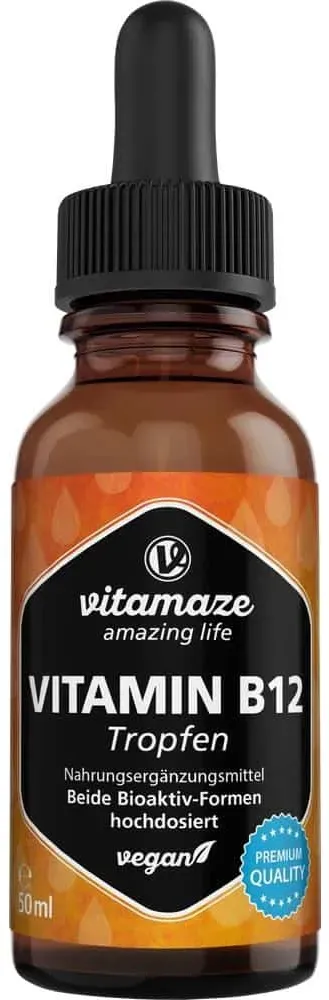 Lieferung in 1-2 Werktagen in_stockvitamaze Vitamin B12 100 µg hochdosiert vegan Tropfen 50 ml